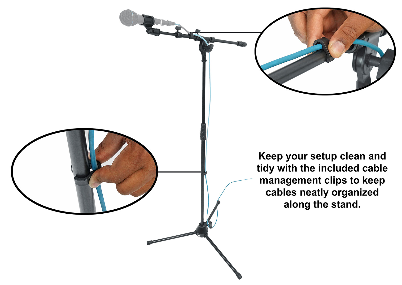Cable management is also thoughtfully addressed with a cable guiding clip, allowing you to run cables along the stand neatly, maintaining a tidy stage or studio space.