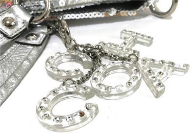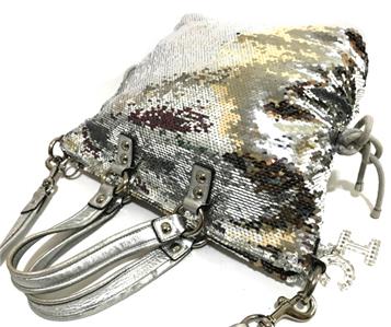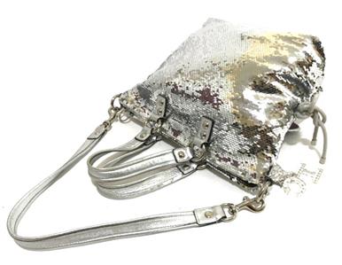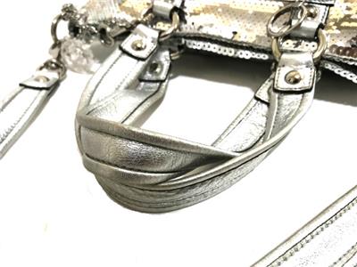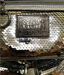 Up for your consideration is one of the most Stunning & Luxurious Coach Bag from the Latest Poppy Collection! The Coach Poppy SEQUIN Spotlight Handbag in Awesome SILVER, Style no. 13821! This Poppy Bag is from the FIRST Year The Spotlights Collection were made. Gorgeously crafted with STUNNING Silver Sparkly Sequins with Soft Crinkle Metallic Leather Trim & Nice side cinched details! Bags is accented with Beautiful Contrasting Silver Hardware with the most sought and ever so desirable acrylic/lucite lettered C*O*A*C*H keyfob with sparkling rhinestones and crystals ( missing crystals!), Absolutely LUXURIOUS & FABULOUS! WOW!This is really STUNNING and One of a Kind!!! And sure to become a classic on its own right. This is not your typical coach bag because it's absolutely WOW! Luxurious & Sophisticated. And the GOLD color is so Pretty & GORGEOUS! This bag easily SOLD OUT at Coach Website & Coach Stores. And soon enough this will be extremely hard to find online.I have no doubt you will really be head-over-heels for this one. Iconic details that last a lifetime and will never go out of style.
