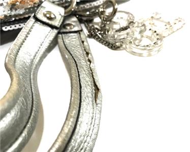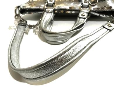 This is PRELOVED and in excellent used condition. Bag has been gently used and show signs of wear. As you can see on pics #11 #22 and #24, it shows the missing rhinestones/Crystals on the C*O*A*C*H keyfob (#11), one of the double handle has the leather coming loose from the stitches on its back (#22) and there are crack spots on the Authenticity Metallic Patch (#24). Please see photos and you will be the judge if these wear takes away the beauty of this bag. All my bags are Verified Guaranteed 100% Authentic as always. This bag is STUNNING in awesome size with Removable Shoulder Strap if you want to carry on your shoulder. Gorgeous Style with luxurious SILVER sequin details oozing with class and sophistication, WOW! This is super HOT and Sure to TURN HEADS! This would absolutely make a beautiful and wonderul gift for someone special and would make a great addition to your coach collection. Comes wrapped in tissue paper.