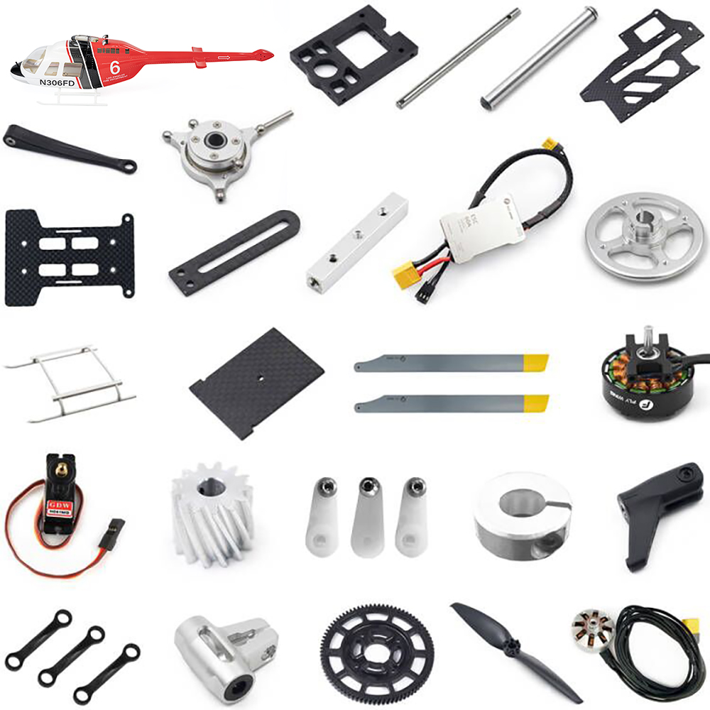 Fly Wing Bell-206 RC Helicopter Parts Drone Accessories Original Factory Installed Plate Tail Blade Main Blade Motor Feathering Shaft Servo ESC