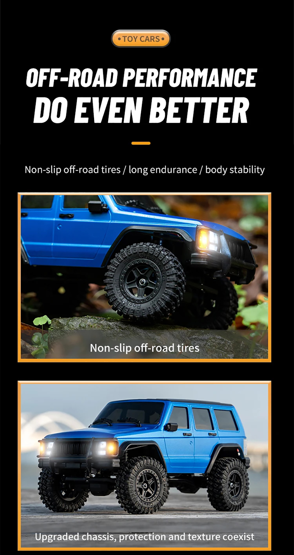 4. We offer ample original modification parts for DlY enthusiasts to customize their rides and enjoy the thrill of simulated off-roading. A switch button under the car adds convenience without the need to dismantle the shell.