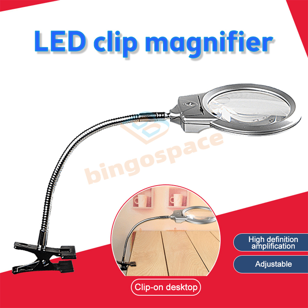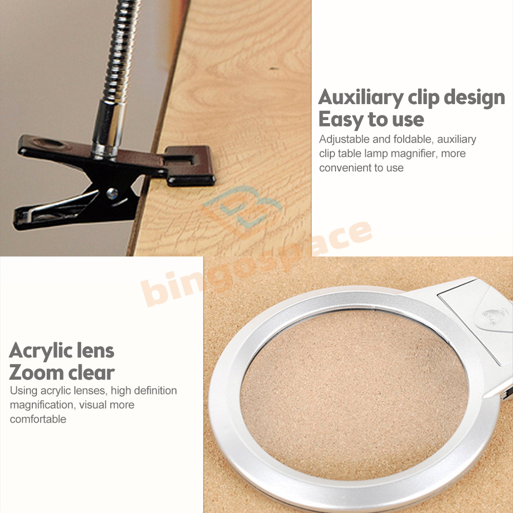 Magnifier LED Lamp Magnifying Glass Desk Table Light Reading Lamp with Clamp