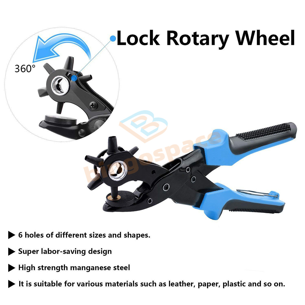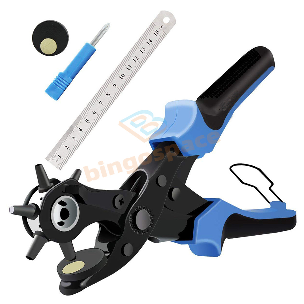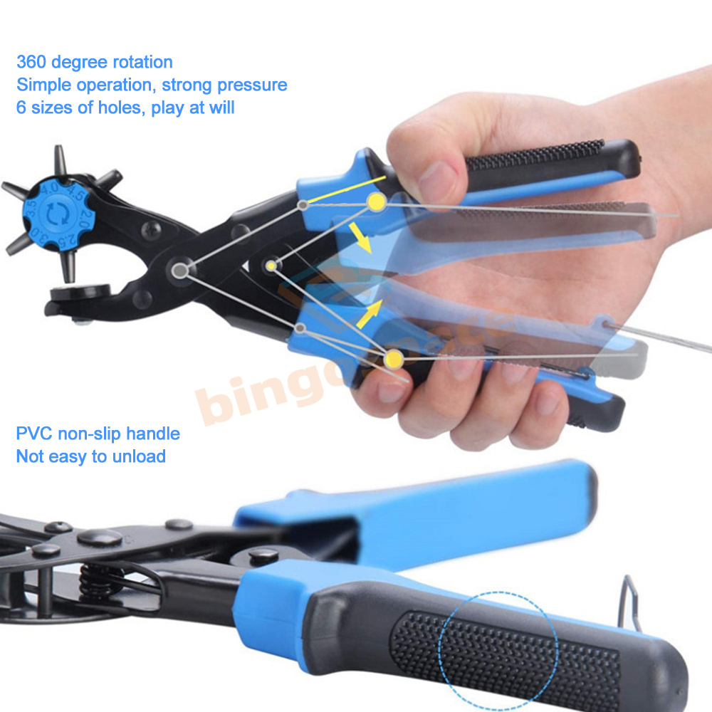 1. Multifunction: applicable to various surfaces. This is a great tool. Punching pliers are usually used to punch holes in leather, belt, plastic, rubber, canvas, fabric, cardboard, saddle and similar materials; It is especially used as a leather punch. It comes in six different sizes, all of which are the most popular. The six cones are very sharp to meet the maximum demand.