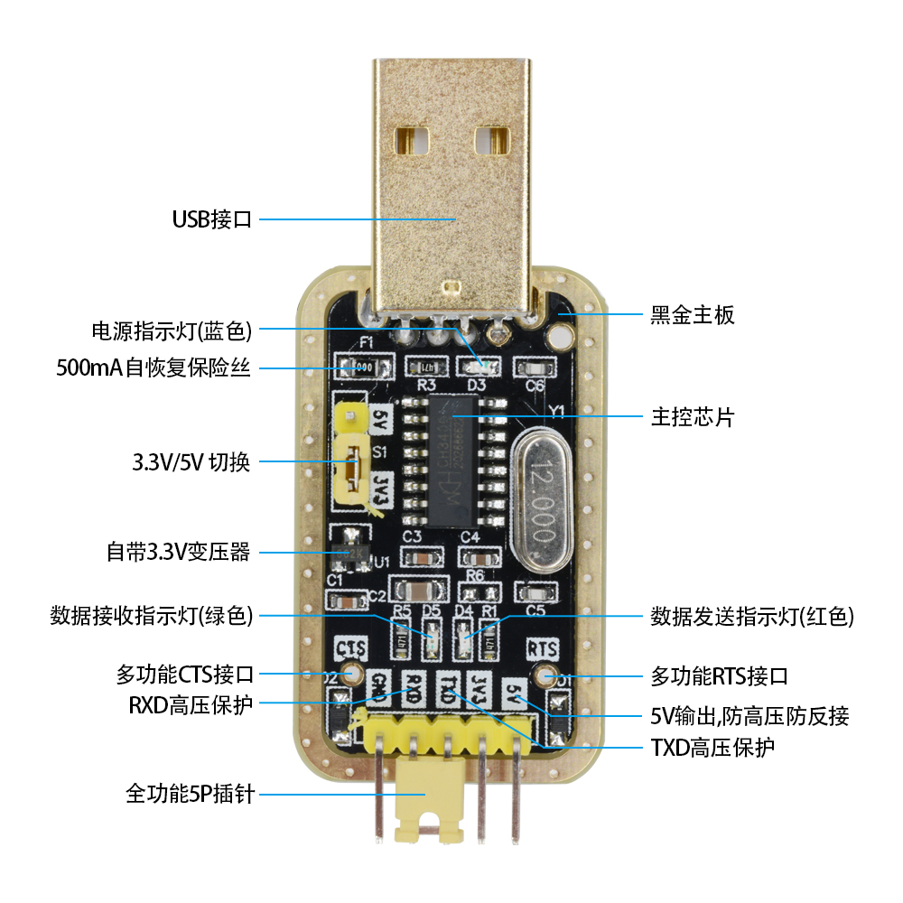 1 x CH340G RS232 Upgrade to USB TTL Auto Converter Adapter STC Brush Module Golden