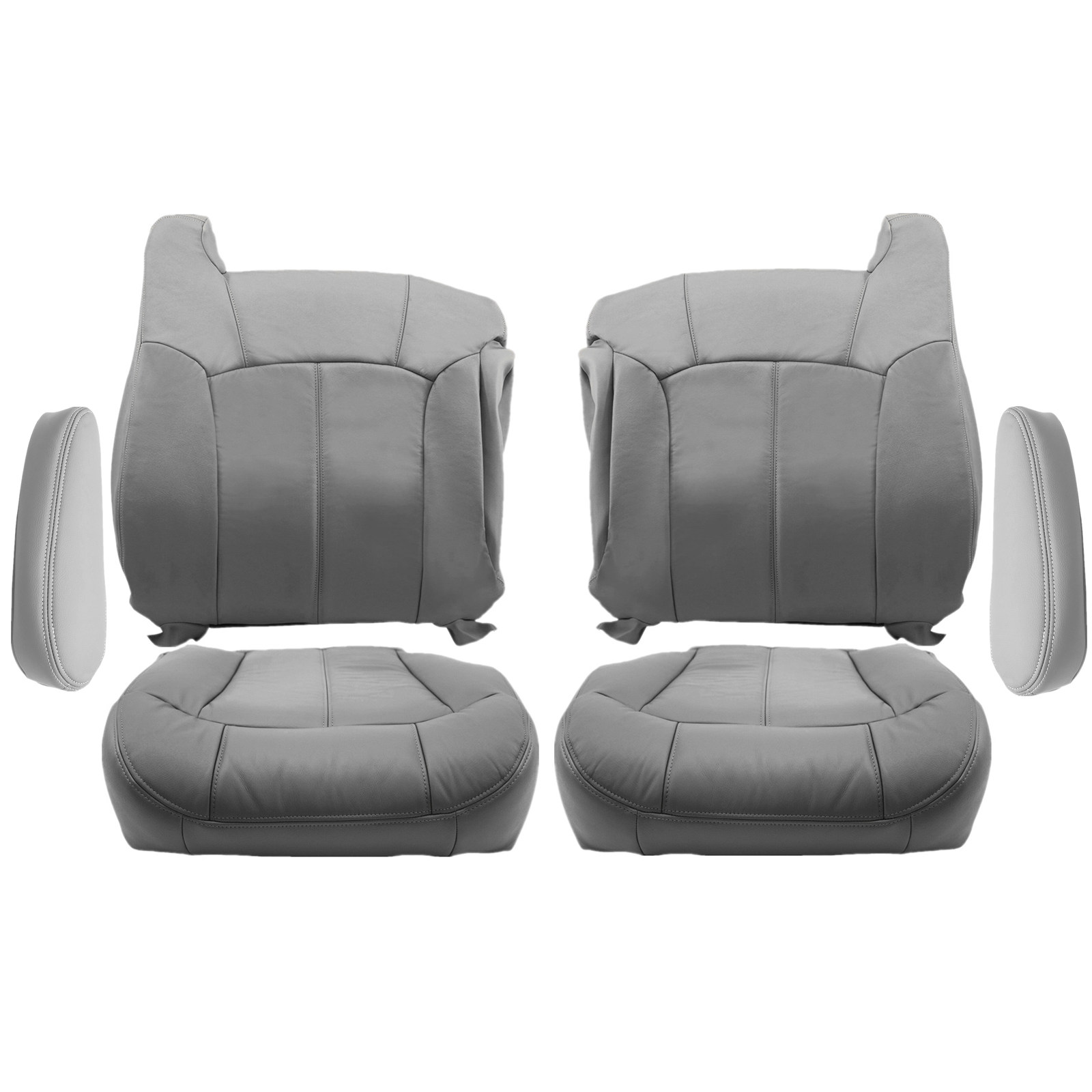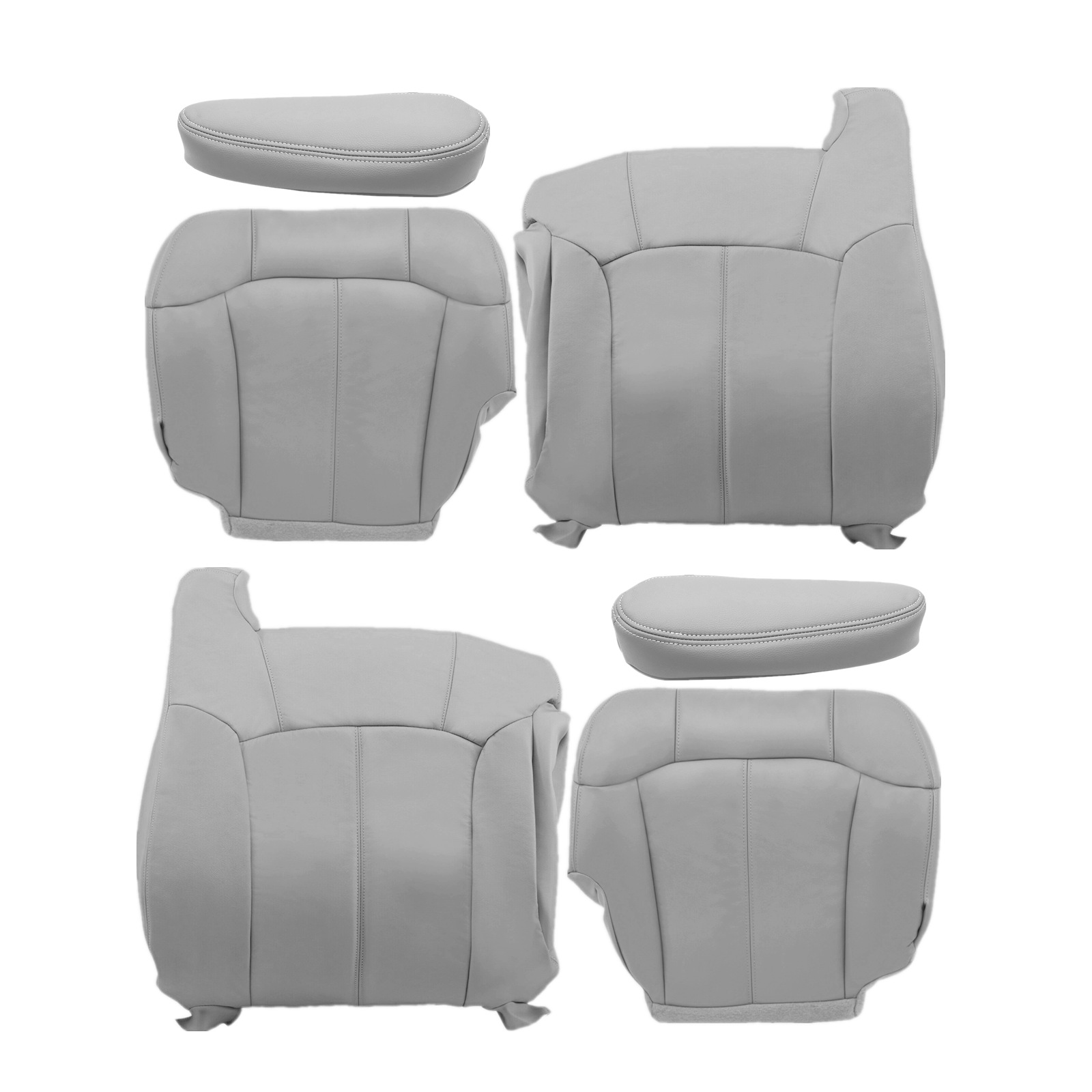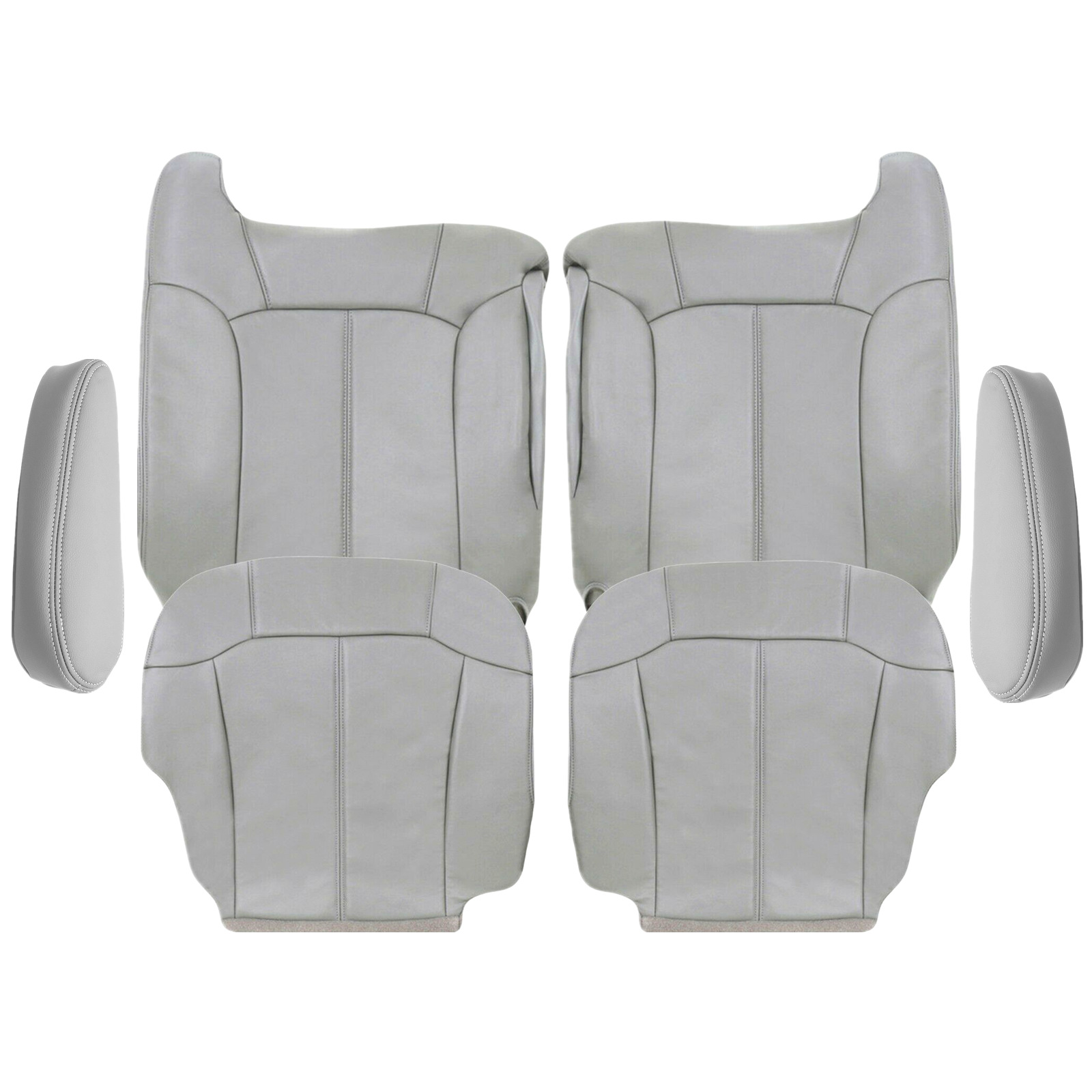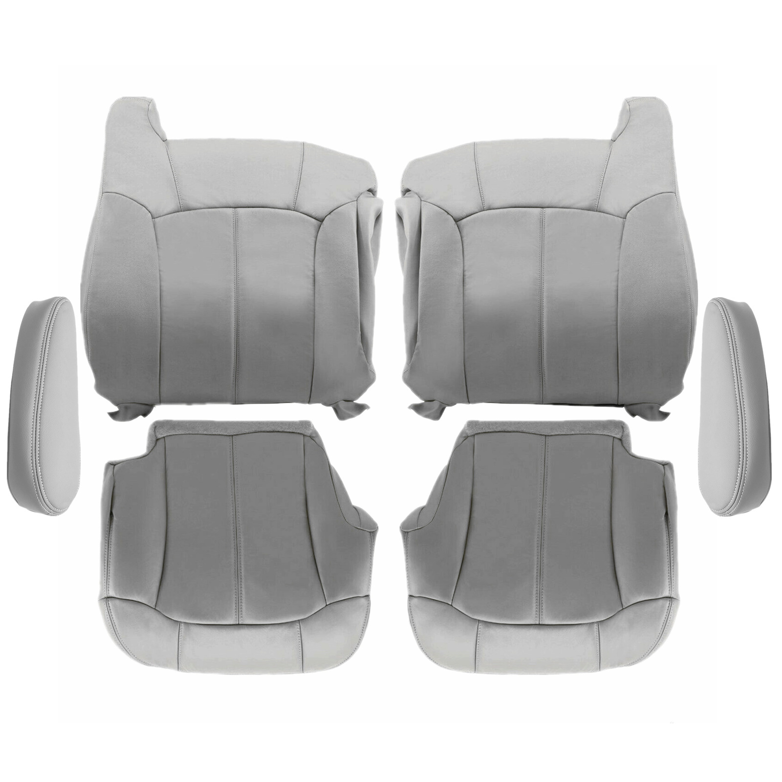 Replacement For 1999 2000 2001 2002 Chevy Tahoe Suburban-Silverado- Sierra-Yukon Driver & Passenger Bottom & Lean Back Cover & Armrest Cover Pewter Gray