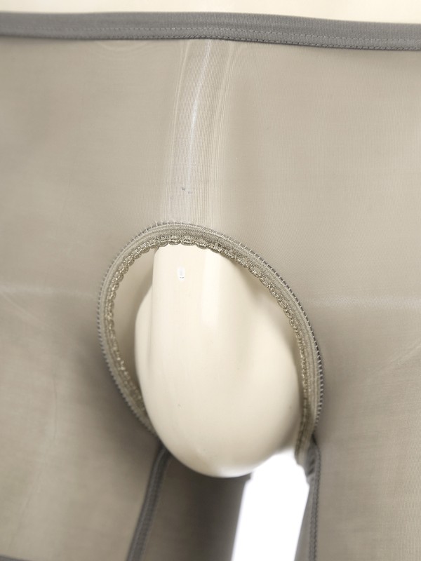 Low rise with comfy elastic waistband, front with see through mesh bulge pouch, open butt design.