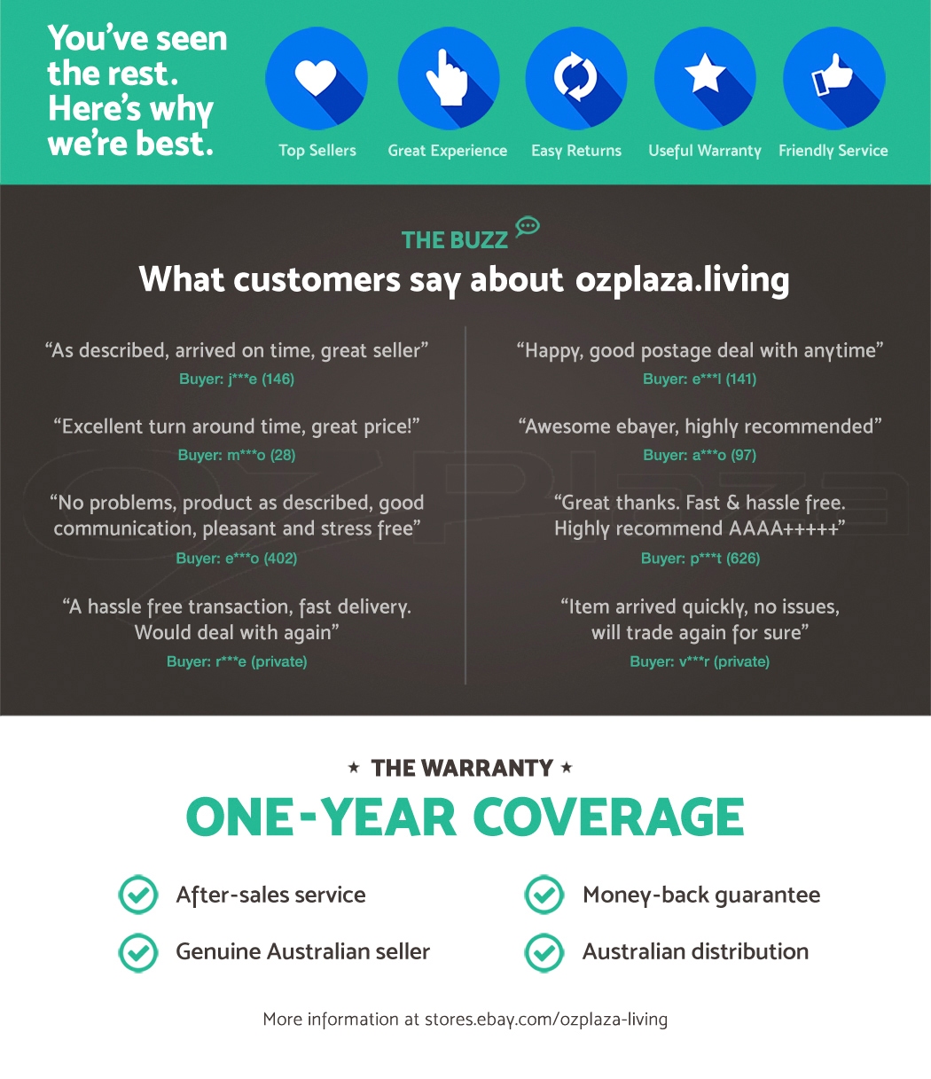 For your peace of mind, this product comes with a 1-year warranty. We value our customers and wish to make your purchase experience as enjoyable as possible. If something goes wrong with your product, please do not hesitate to contact us for assistance. Please CLICK HERE for full terms and conditions that outline your warranty rights.
