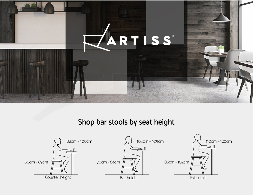 The Artiss Ludovic Bar Stool blends comfort and style, featuring a thick foam padded seat with PU leather upholstery, solid metal frame, and footrest. Its anti-slip feet ensure stability, while its fixed height and easy assembly add convenience.
