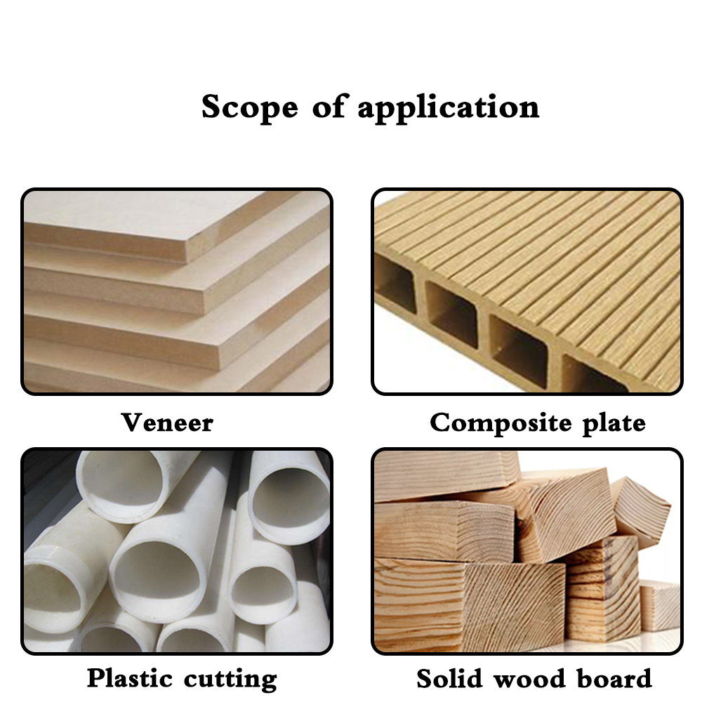 Suitable for wood, cutting fast and sharp. /Used for cutting and cross sawing various hard and soft solid wood profiles, density boards, multi-layer boards, particle boards, etc. Suitable for hard and soft solid wood panels such as plywood, bamboo, round wood, square wood, and cork.