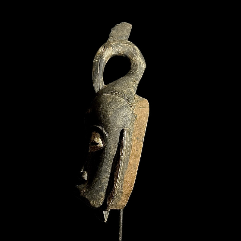 SIZE(CM): 42/14.5 SOLD without THE STAND Presenting a stunning Gu Mask, a beautifully crafted artifact that embodies the artistic and spiritual traditions of the African Guro people. This exquisite mask represents Gu, the wife of Zamble, a revered supernatural being known in the rich mythology of the region. In remarkable condition, this elegant mask captures the essence of grace and serenity. Its delicate features invoke a sense of beauty that is often celebrated in Guro art, making it not just a decorative piece but a powerful symbol of cultural identity and spiritual significance. The intricate carvings and thoughtful design breathe life into the mask, showcasing the exceptional craftsmanship of the artisan. Traditionally, Gu masks are used in various ceremonial contexts, often playing a crucial role in rituals that celebrate the connection between the spiritual and physical worlds. The graceful design of this mask exemplifies the ideals of beauty and harmony with nature that the Guro people hold dear. Measuring approximately [insert dimensions], this mask is perfect for display in any home, art gallery, or collection dedicated to African masks and tribal art. Its captivating presence invites admiration and serves as an intriguing conversation starter about the rich cultural heritage of the Guro people. Don’t miss the opportunity to own this extraordinary Gu mask, a true testament to the beauty and complexity of African craftsmanship. Enhance your collection with this remarkable piece that celebrates the artistry and spiritual narratives of African culture!