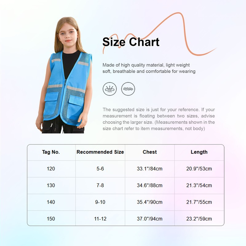 Kids reflective safety vest is suitable for school camp, volunteer activities, social service, public activities and other events.