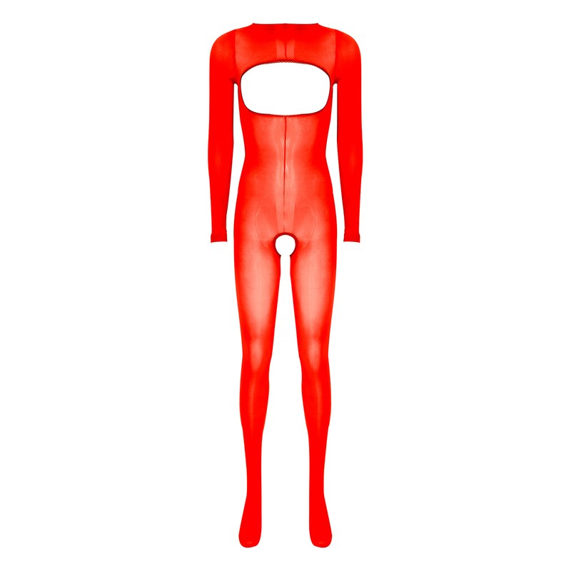 Transparenter Damen-Body: lange Ärmel, offene Brust und ouvert, einfarbig, ein Muss für Ihre besonderen Momente.