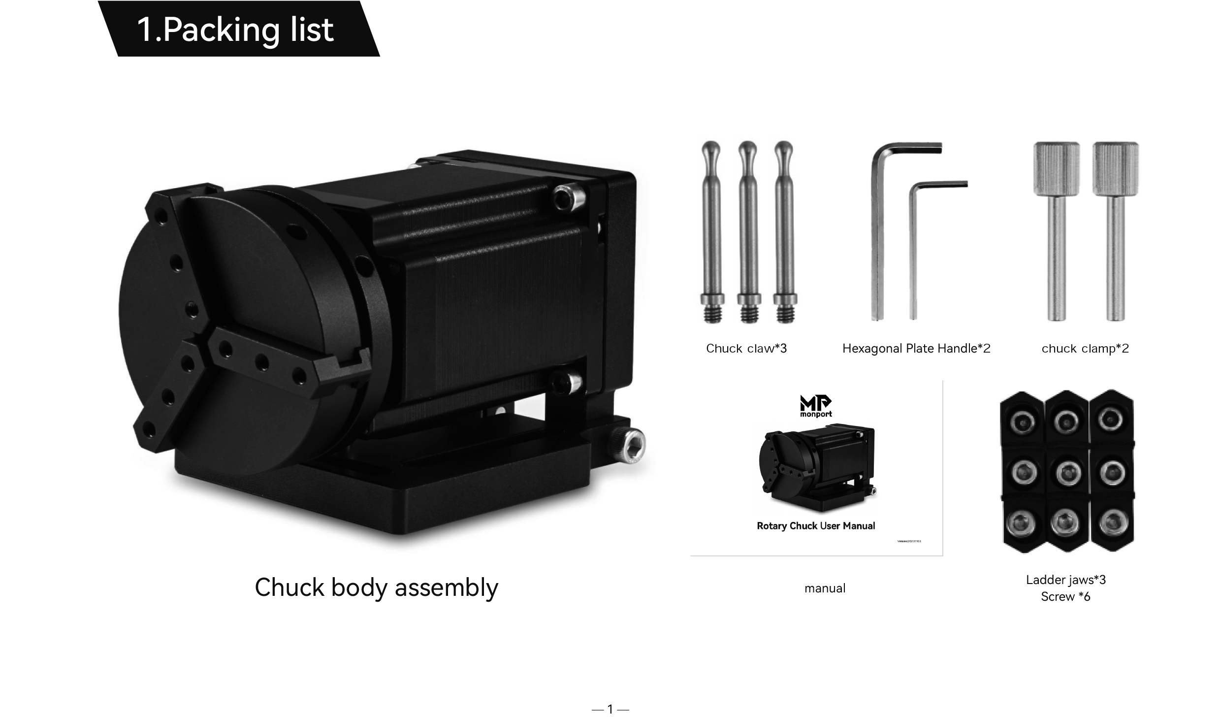 Monport Rotary Axis Chuck Attachment for Laser Engraving Machine(for fiber machines only)