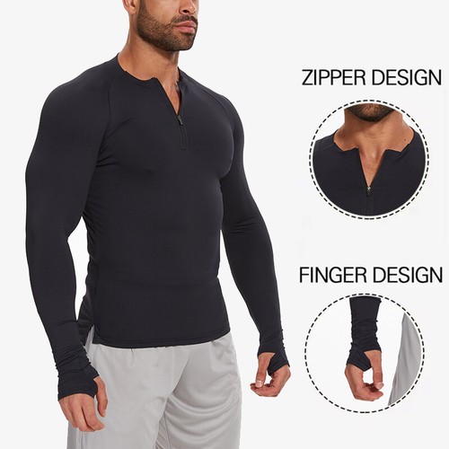 Men's 1/4 Zip Long Sleeve Shirt Quick Dry Running Tops Athletic Quarter T-Shirt