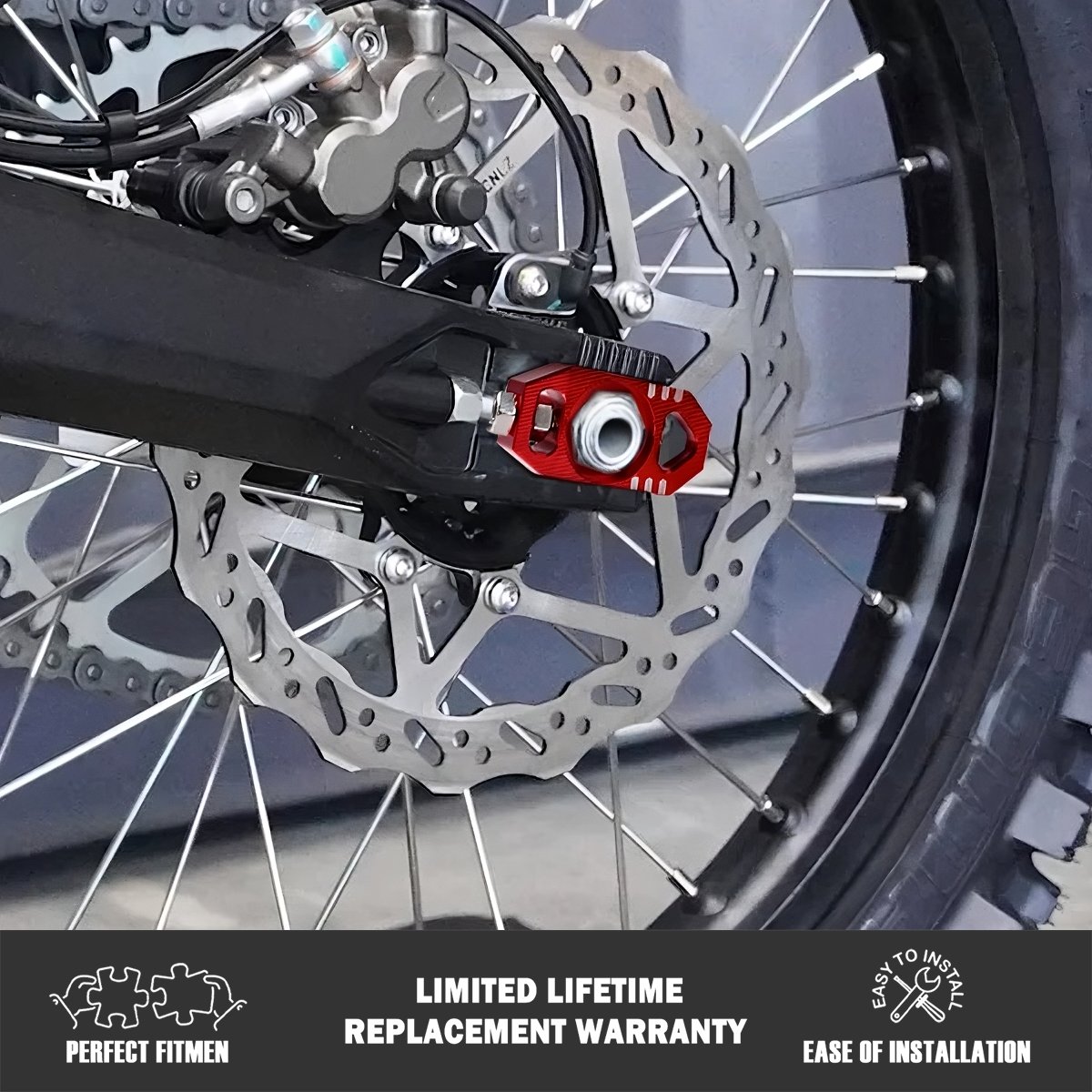 Function: Turn the adjusting bolt. Move the axle block forward or backward to adjust the sprocket tension