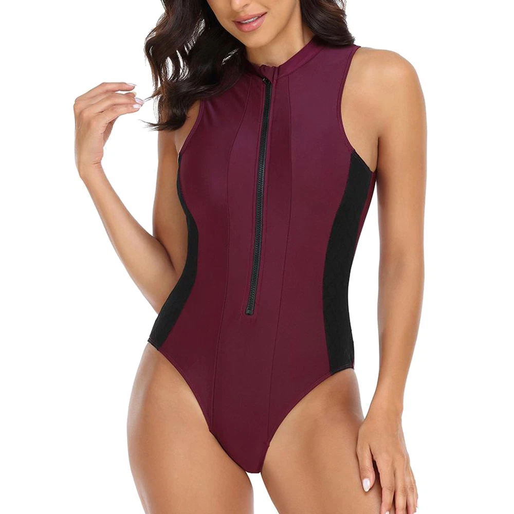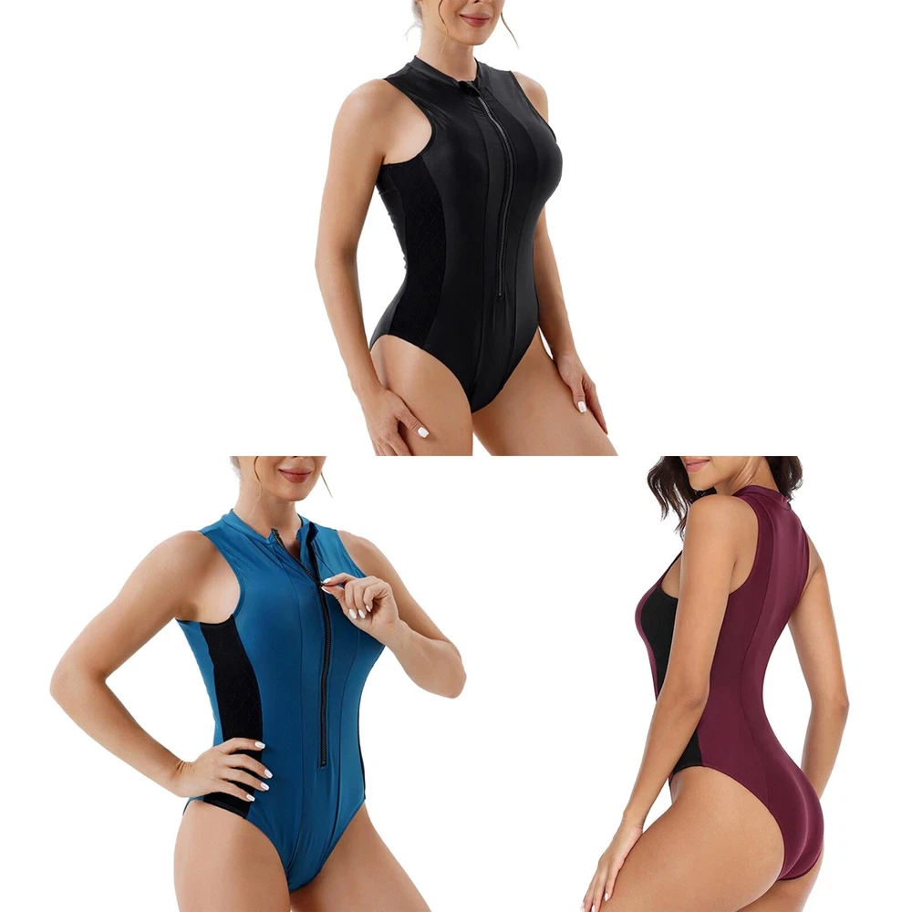 Women's One Piece Monokini High Cut Thong Zip Leotard Swimwear Swimsuit Wetsuits