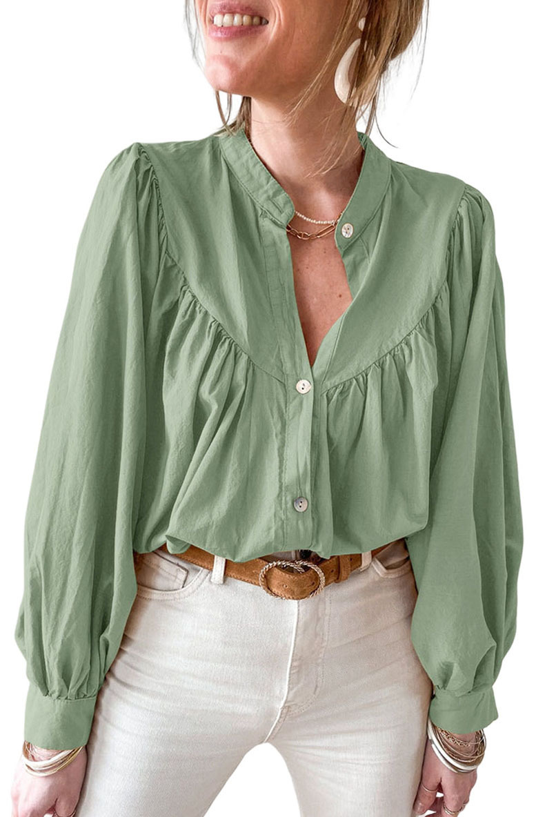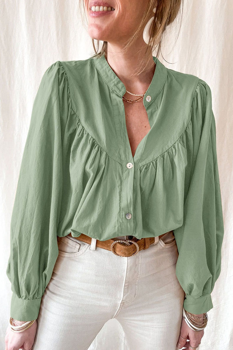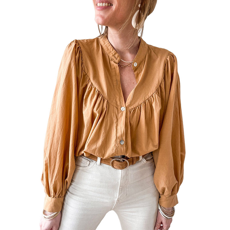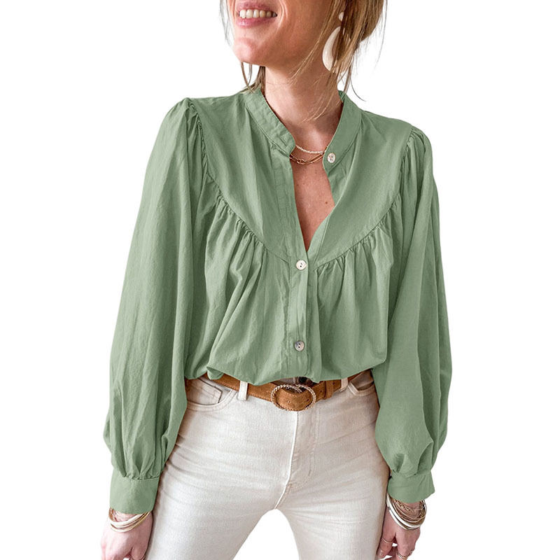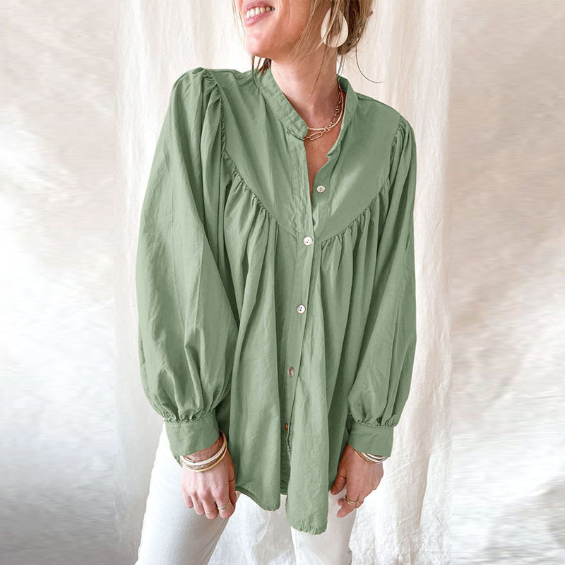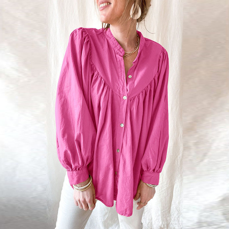 New solid color loose long sleeve blouse women casual pleated shirt