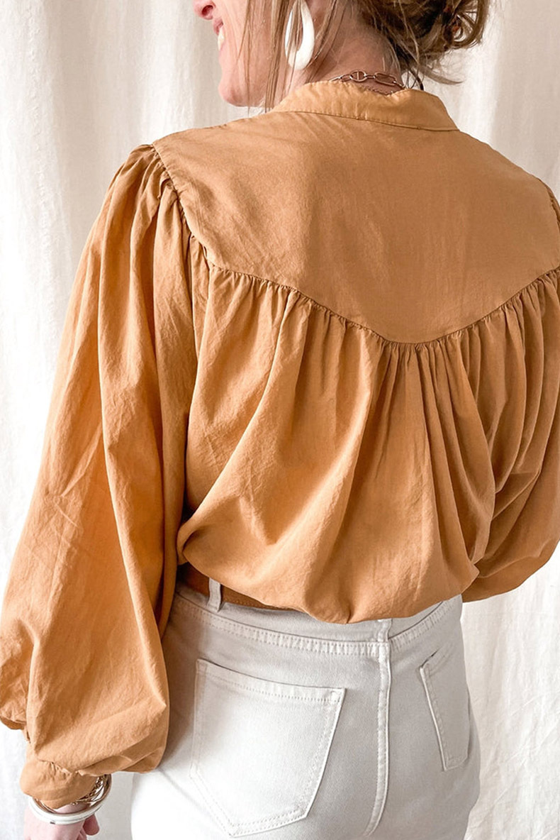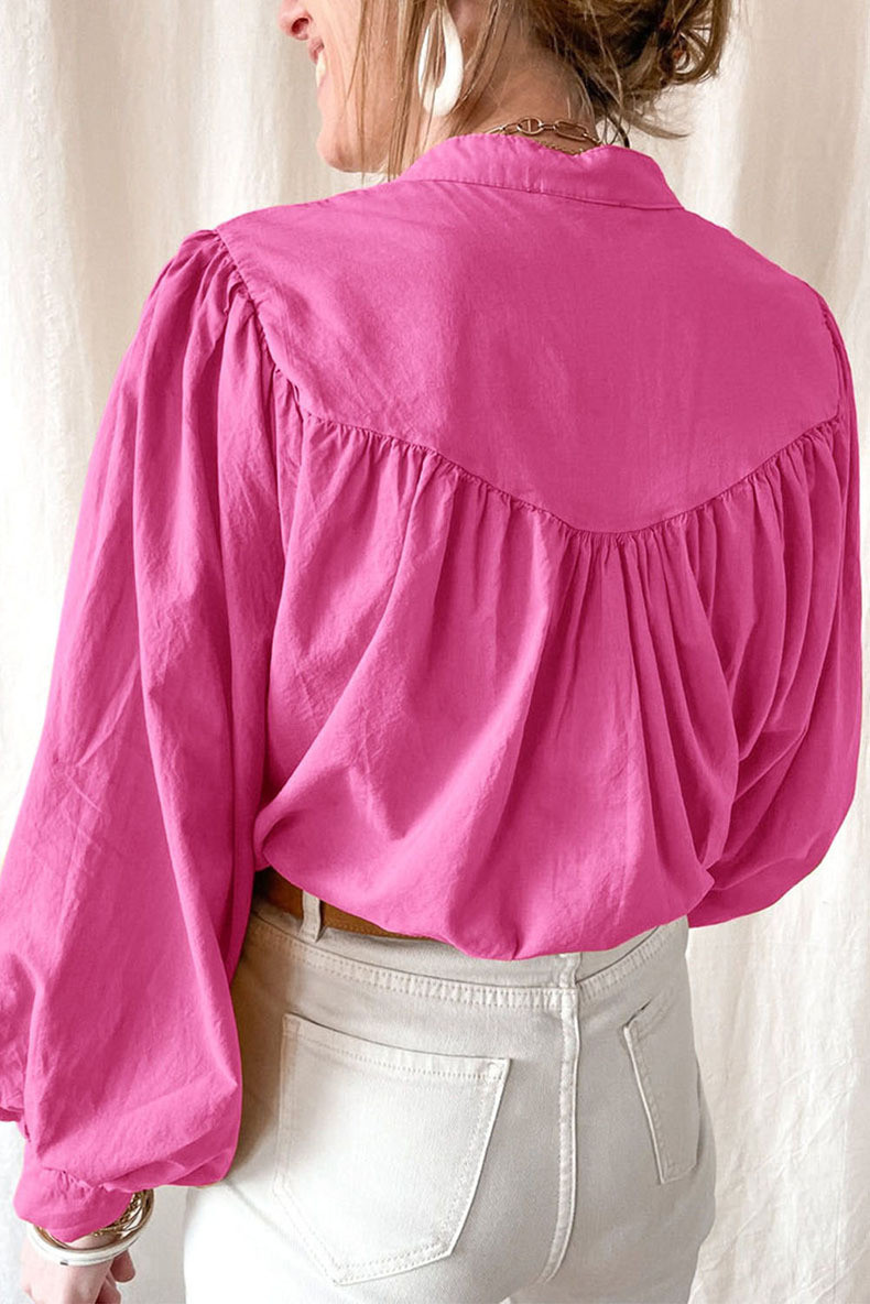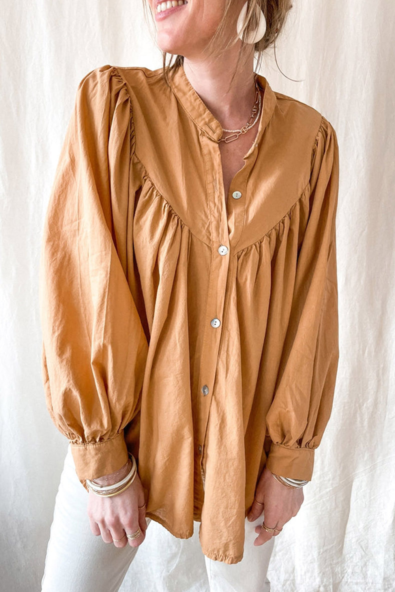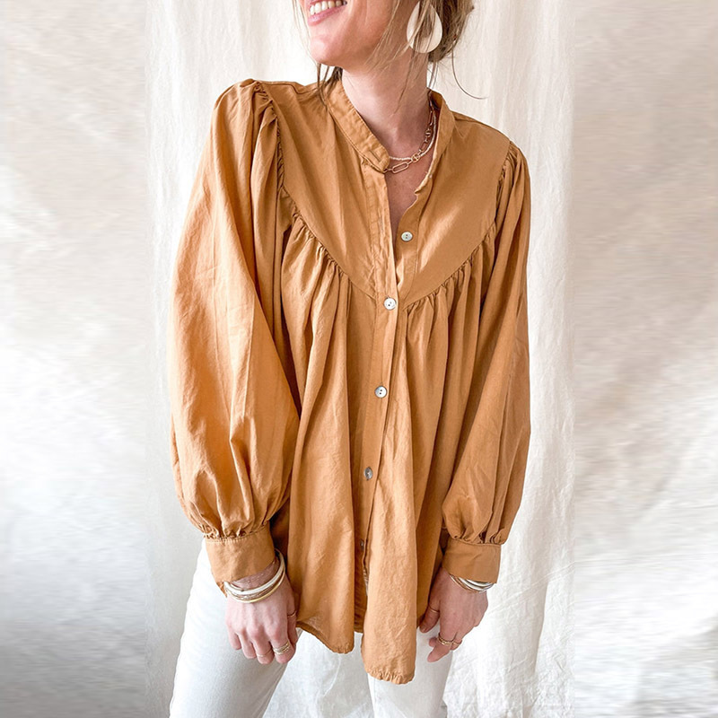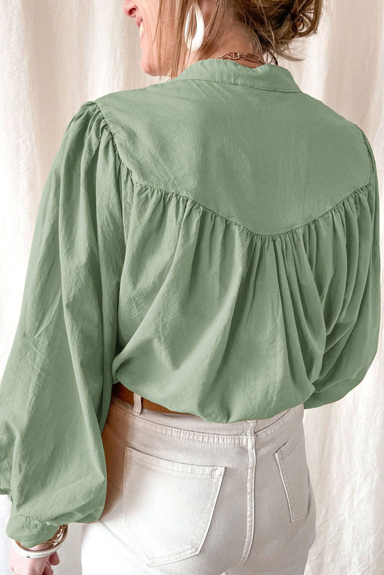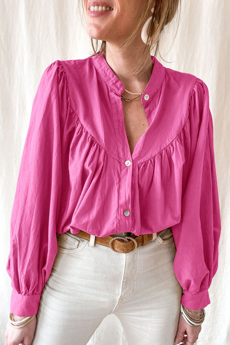 New solid color loose long sleeve blouse women casual pleated shirt