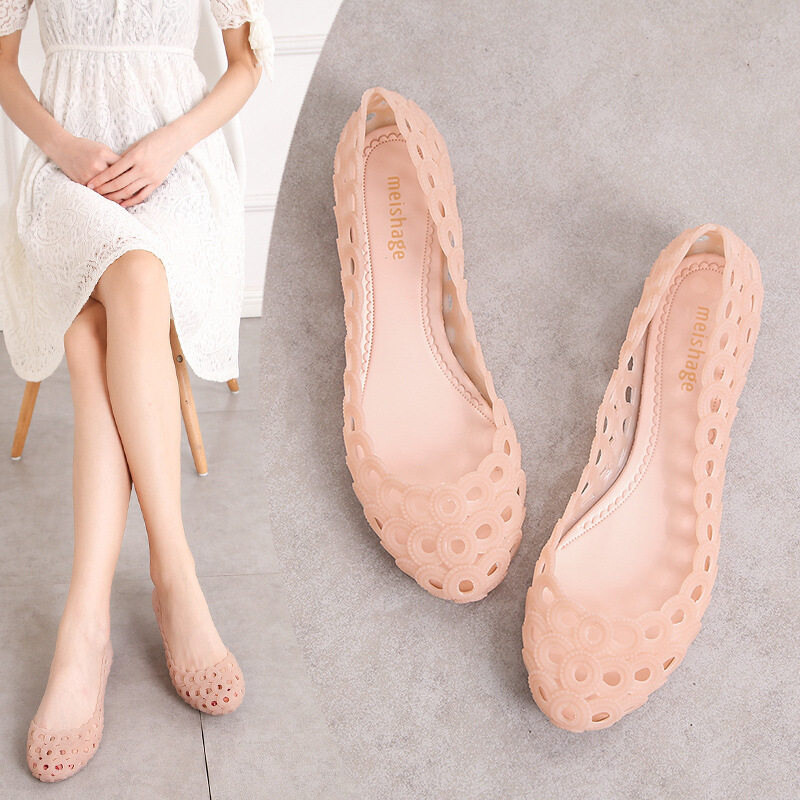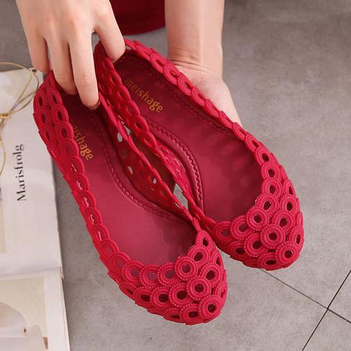 Womens Summer Sandals Jelly Hollow Out Slip On Flat Loafers Beach Shoes Beach