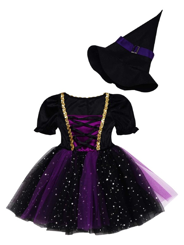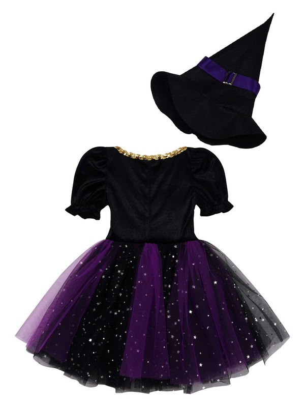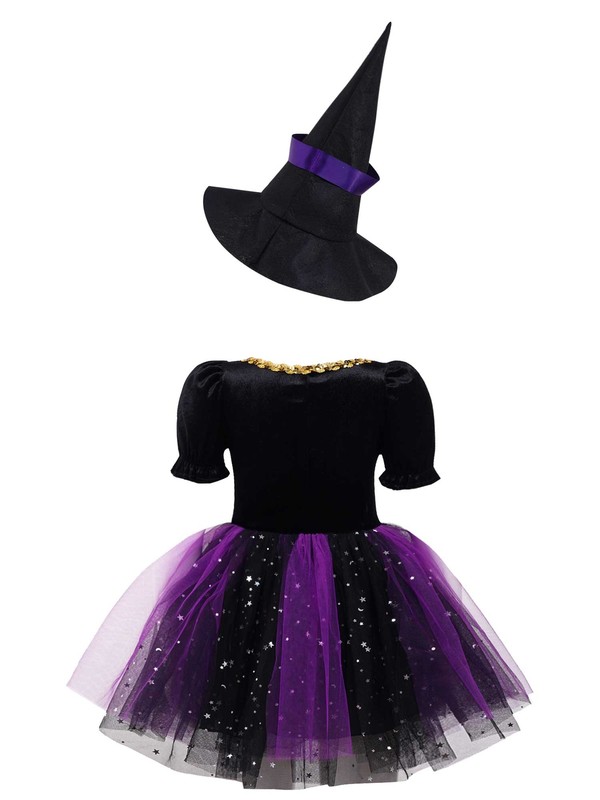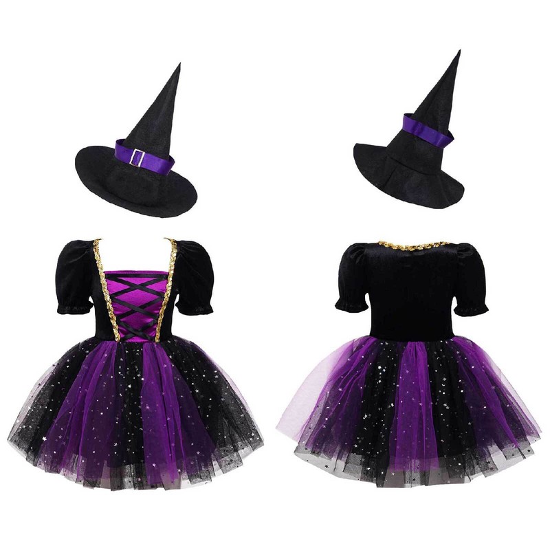 Glittery mesh tutu dress with a pointed hat, makes your girl’s cosplay more real and creates a strong Halloween atmosphere.