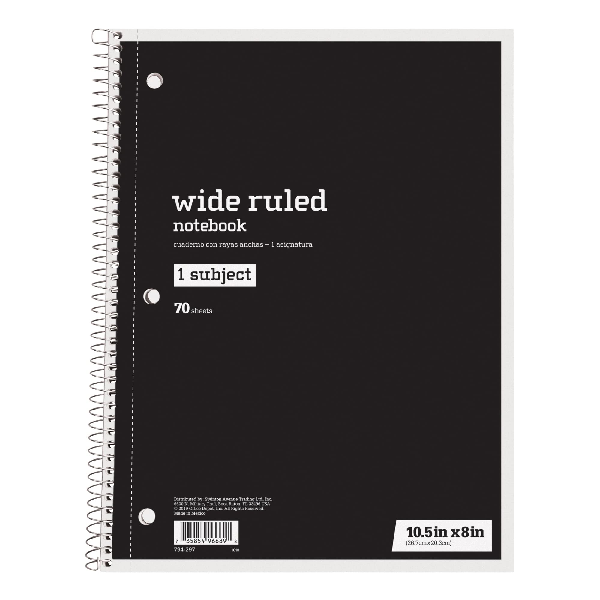 Don't miss an important memo at the office or in the classroom. This spiral notebook features plenty of lined pages to help you organize thoughts or just kick back and start work on a creative writing piece. Cardboard cover protects the pages. Lined pages help you keep notes in order. Acid-free sheets stand up to fading. Perforated to let you hand in assignments. Spiral binding for quick page flipping. Chipboard backing makes the pages easy to write on. Just Basics spiral notebook is wide ruled with 140 pages (70 sheets).