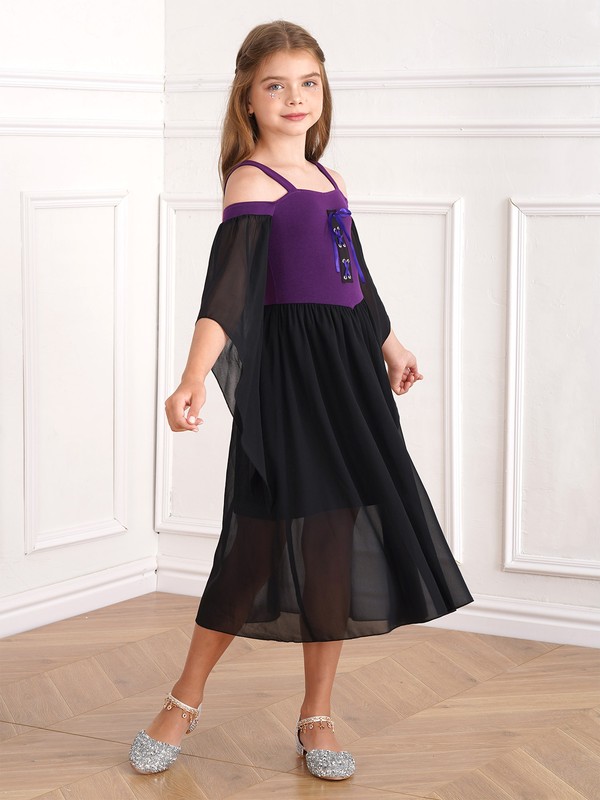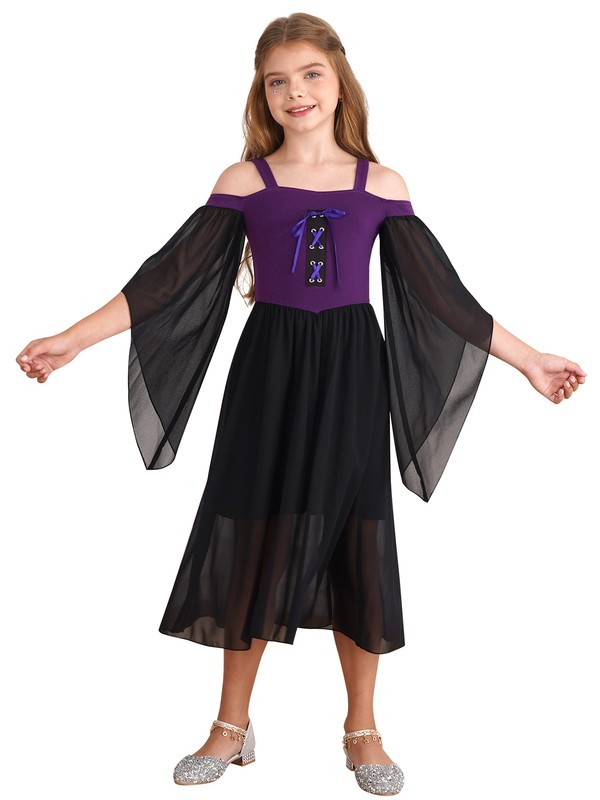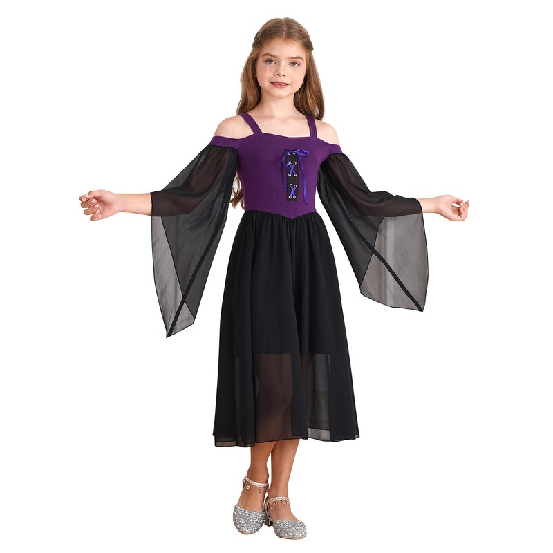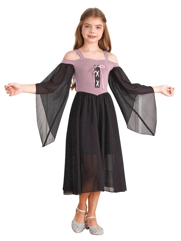 Medieval costume dress for girls, cold shoulder, butterfly sleeve, high waist flowy tulle dress.