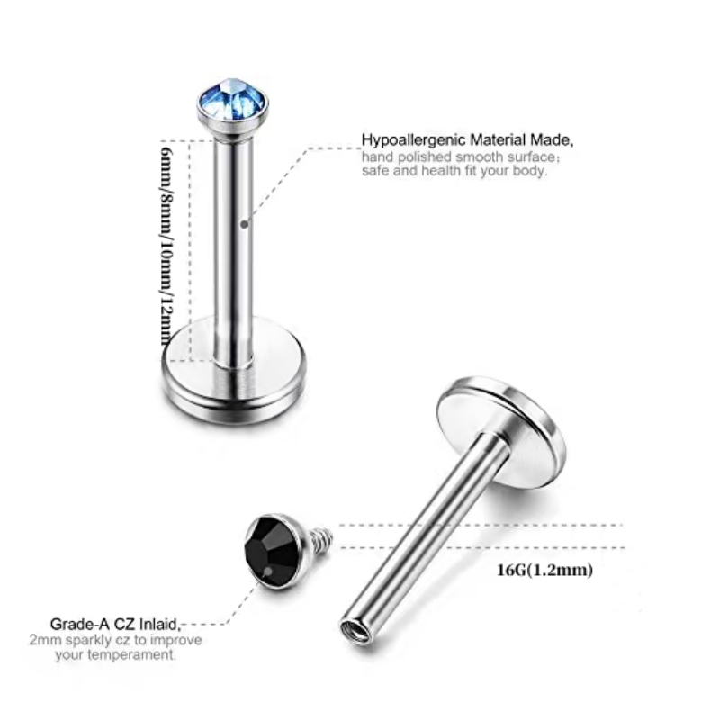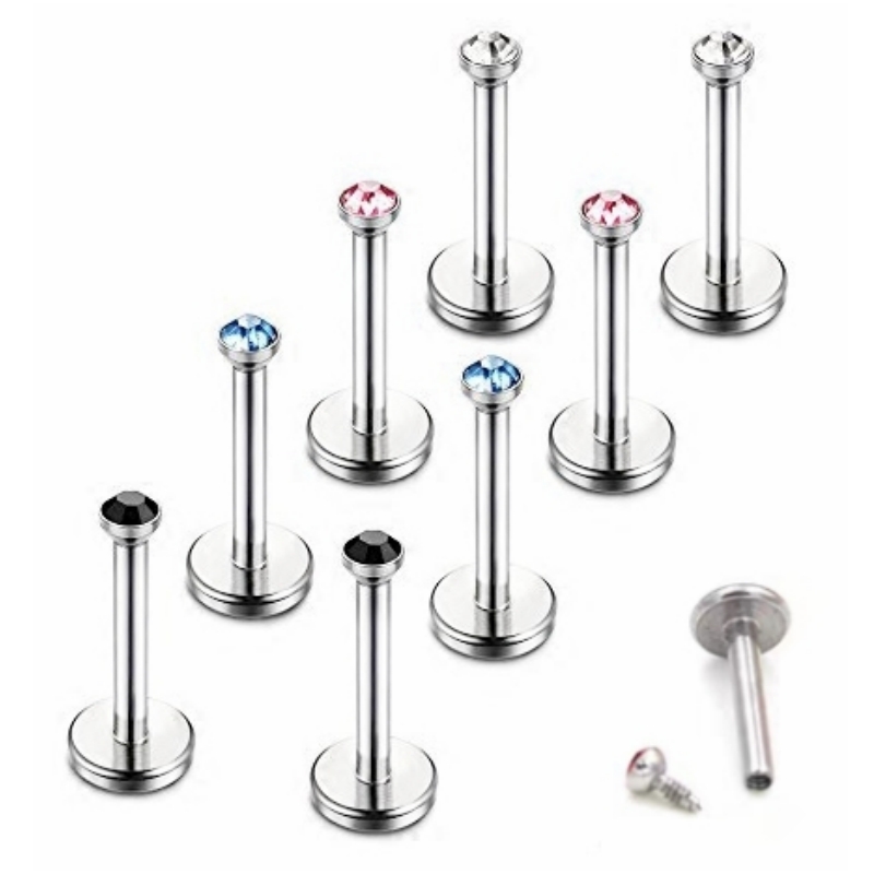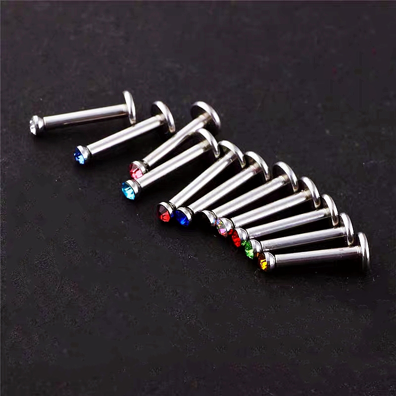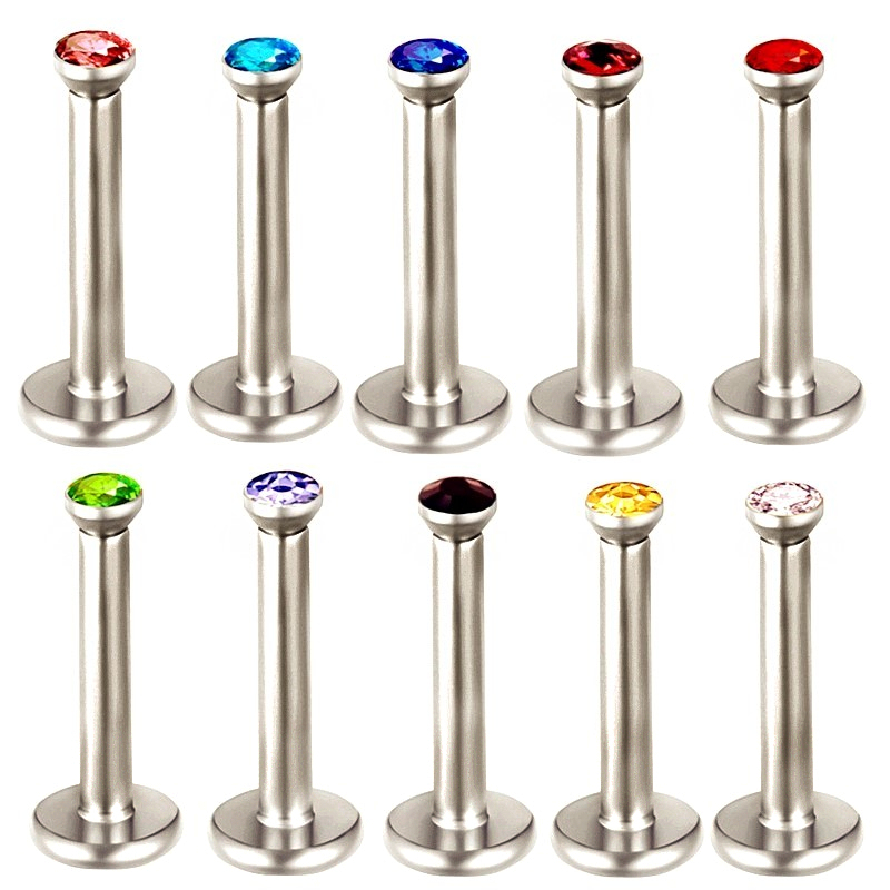 10pc Internal Thread Steel Lip Ring 2mm Gem Labret Monroe Tragus 6mm-12mm Bar
