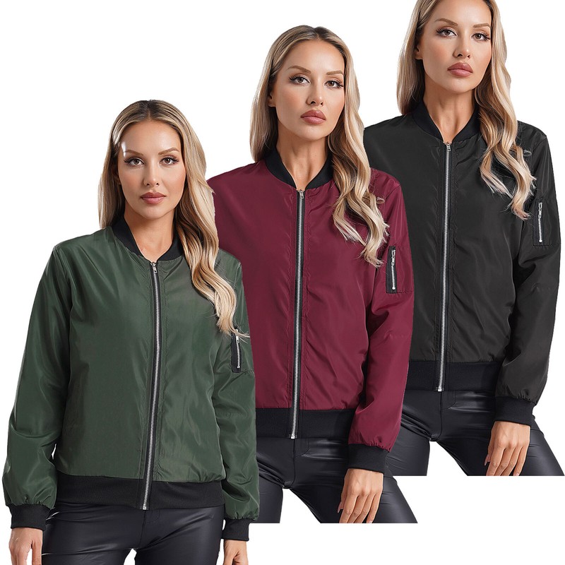 Ribbed collar, cuffs and hem prevent wind from blowing in, and zipper closure looks cool and stylish.