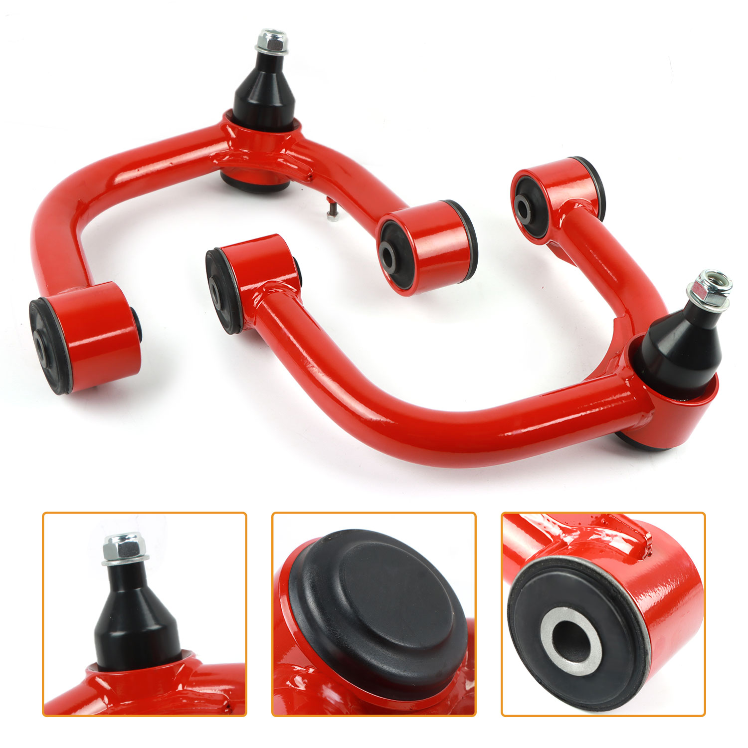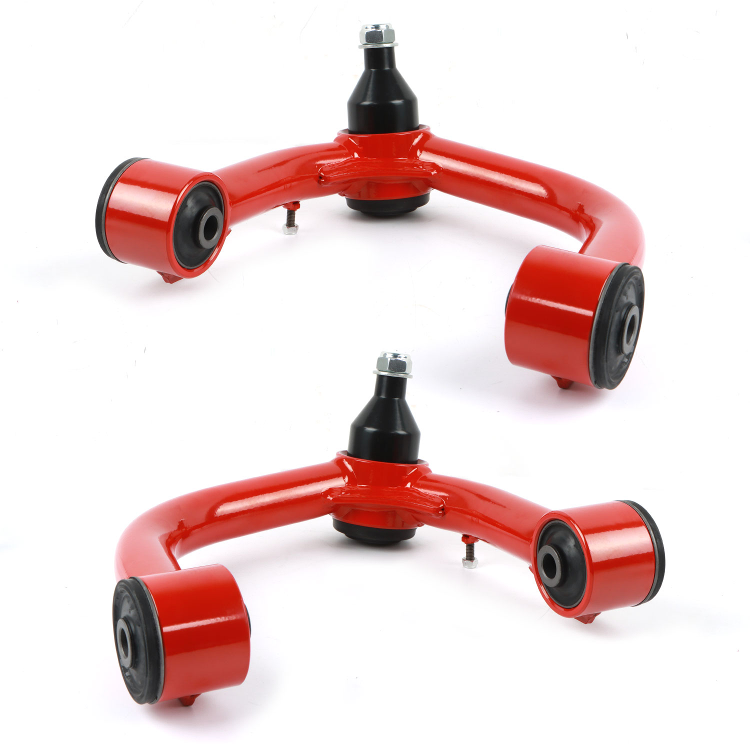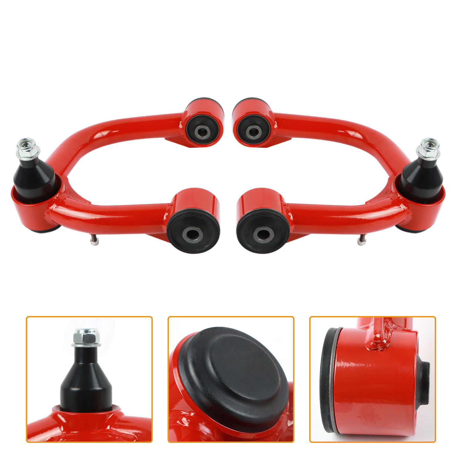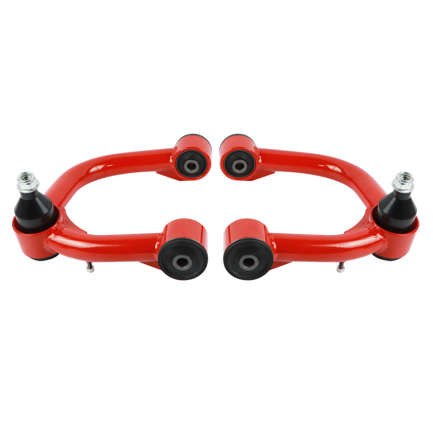 Please test in an empty area before getting back on the road. Specification: *Item Size: 36x36x16 *Item Weight: 8.35KG *Material: Steel *Color: Red *Placement on Vehicle: Left,Front,Right,Upper *Surface treatment: Powder coated *Bushing Material:Rubber Applications: 2005-2022 Toyota Tacoma 6LUG 2WD Package Includes: 2 x Front Upper Control Arms Notice: Fits vehicles with OE cast steel front upper control arms only!!