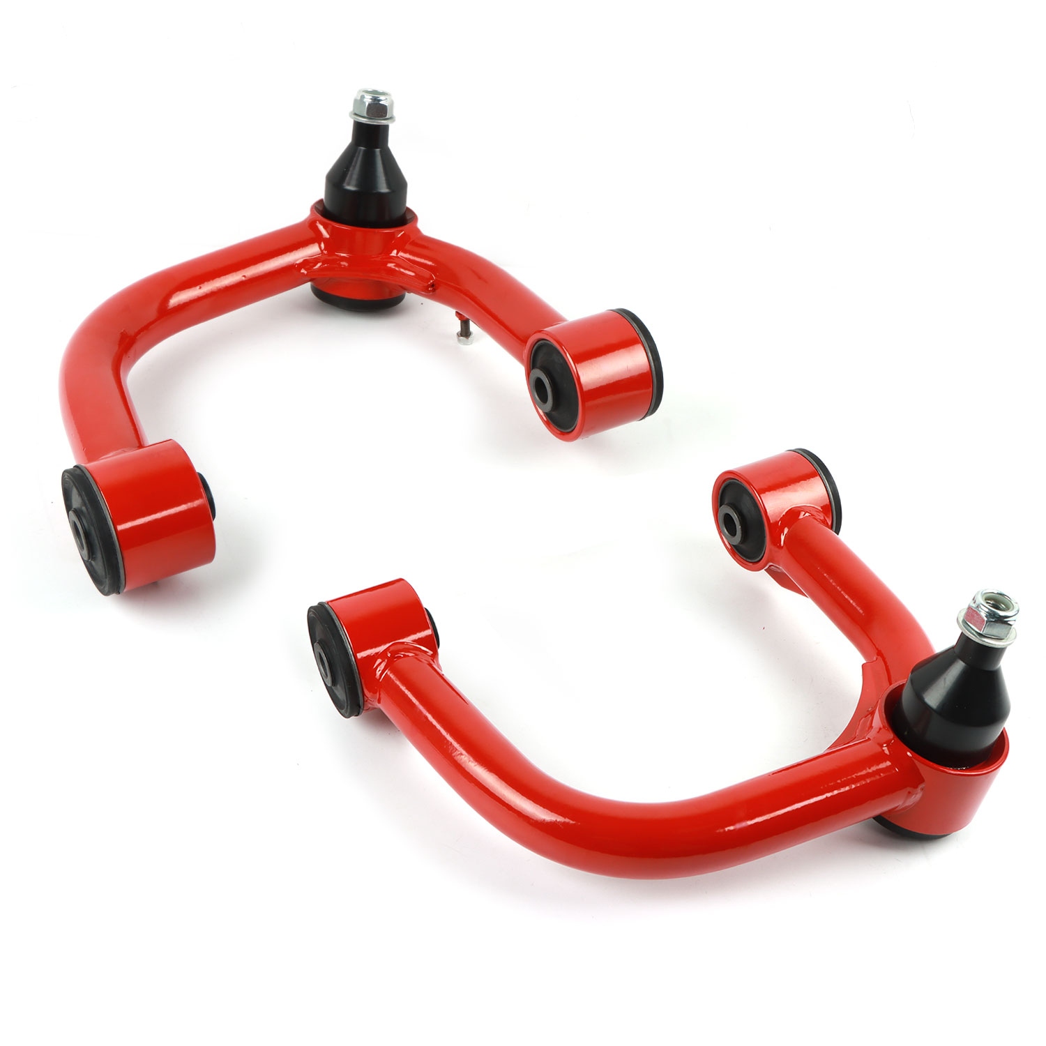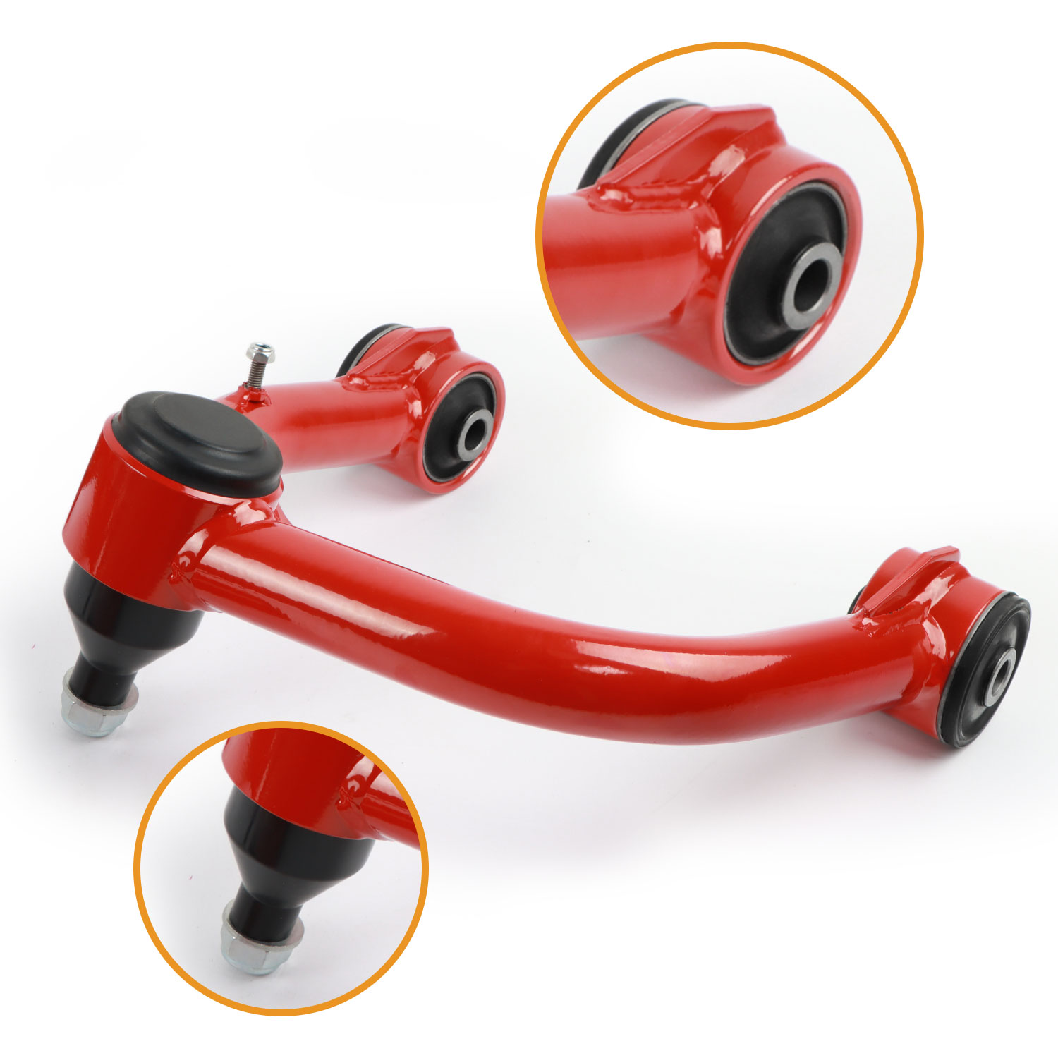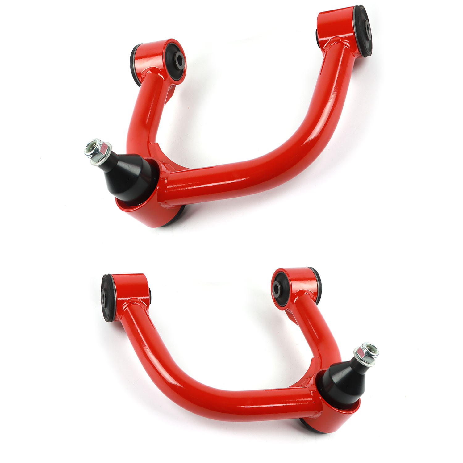 Please test in an empty area before getting back on the road. Specification: *Item Size: 36x36x16 *Item Weight: 8.35KG *Material: Steel *Color: Red *Placement on Vehicle: Left,Front,Right,Upper *Surface treatment: Powder coated *Bushing Material:Rubber Applications: 2005-2022 Toyota Tacoma 6LUG 2WD Package Includes: 2 x Front Upper Control Arms Notice: Fits vehicles with OE cast steel front upper control arms only!!
