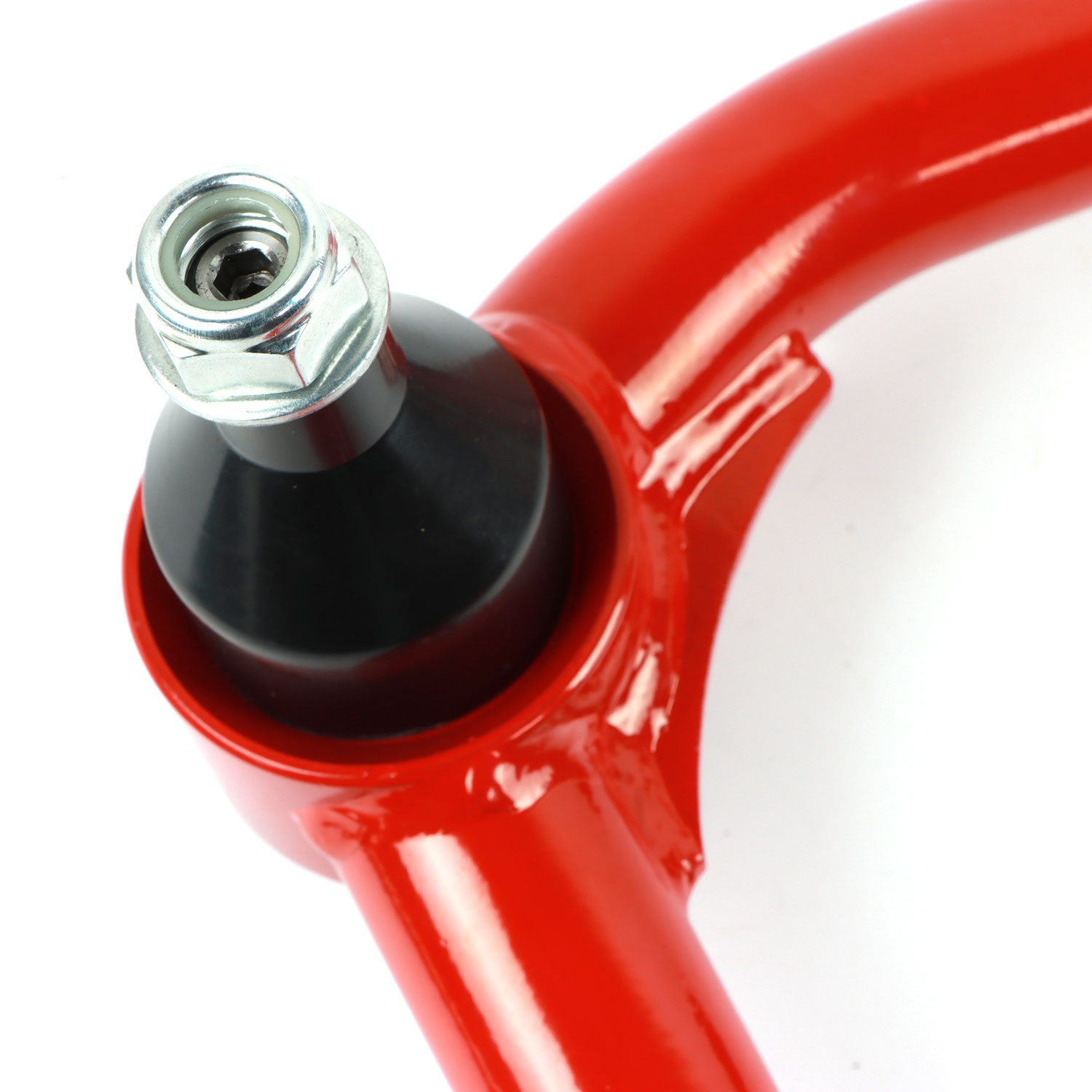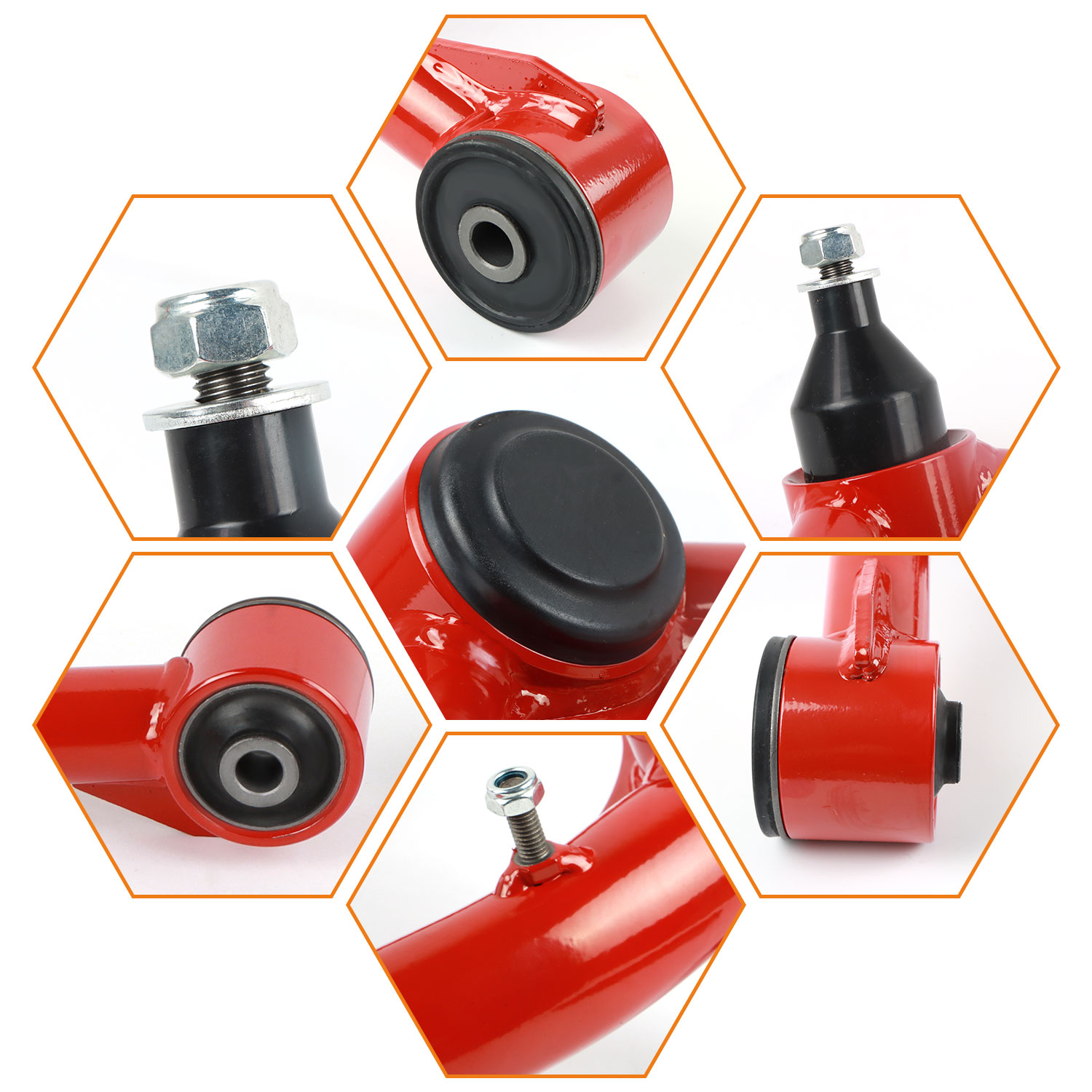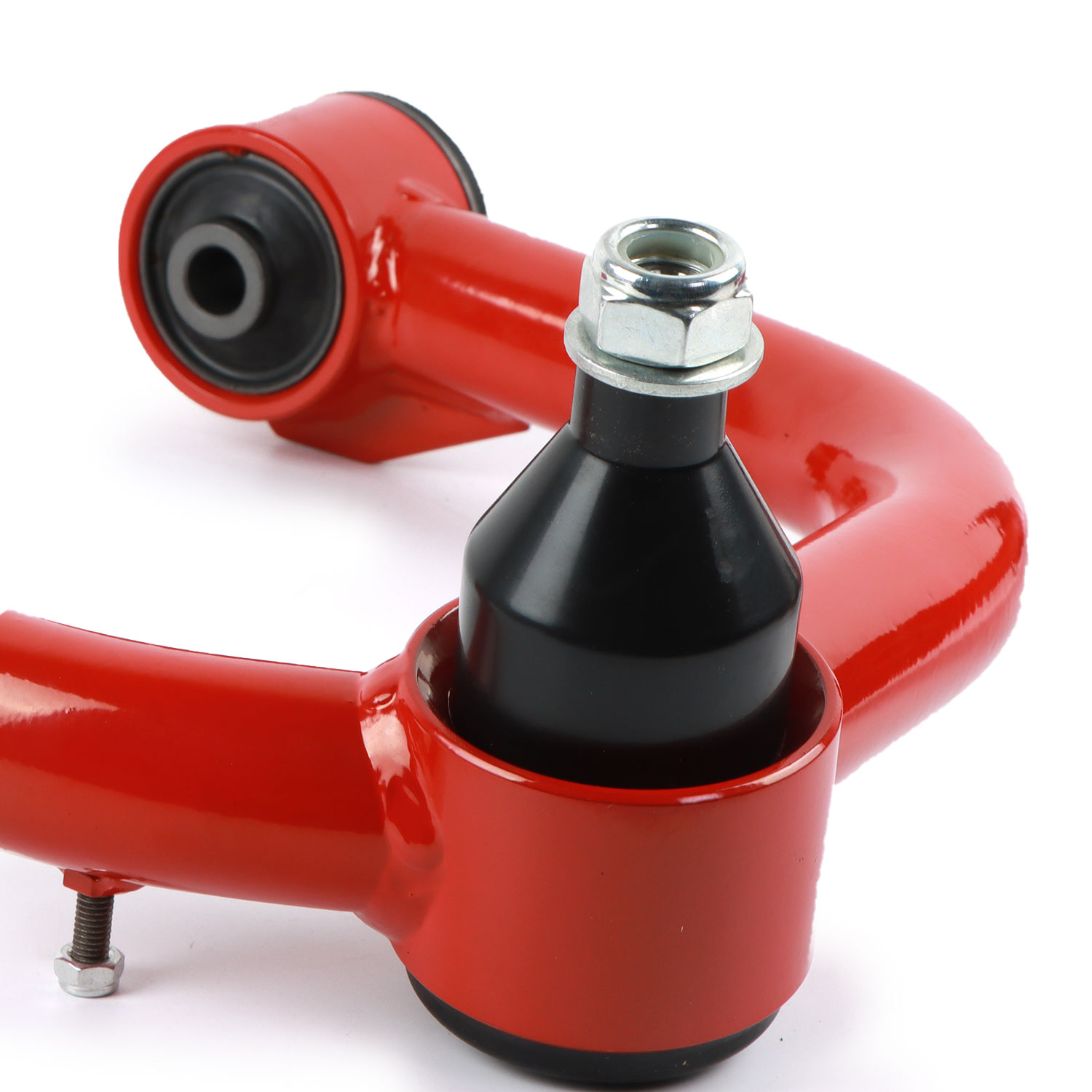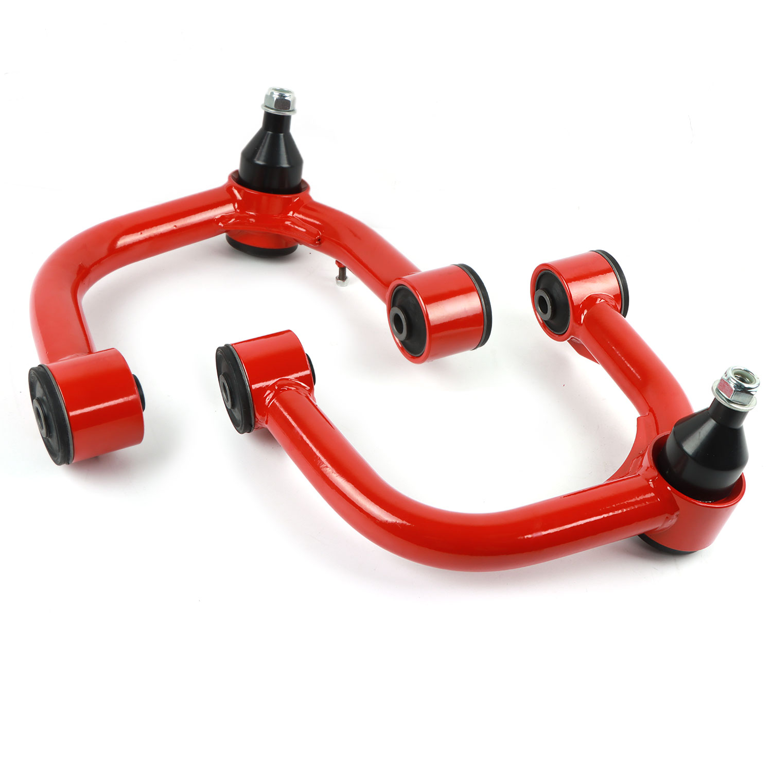 Please test in an empty area before getting back on the road. Specification: *Item Size: 36x36x16 *Item Weight: 8.35KG *Material: Steel *Color: Red *Placement on Vehicle: Left,Front,Right,Upper *Surface treatment: Powder coated *Bushing Material:Rubber Applications: 2005-2022 Toyota Tacoma 6LUG 2WD Package Includes: 2 x Front Upper Control Arms Notice: Fits vehicles with OE cast steel front upper control arms only!!