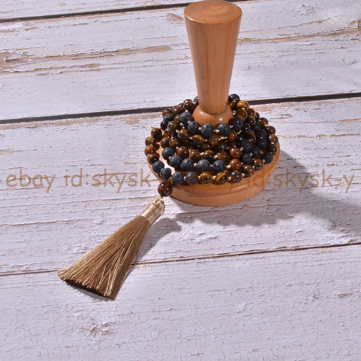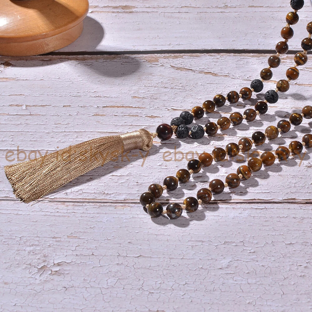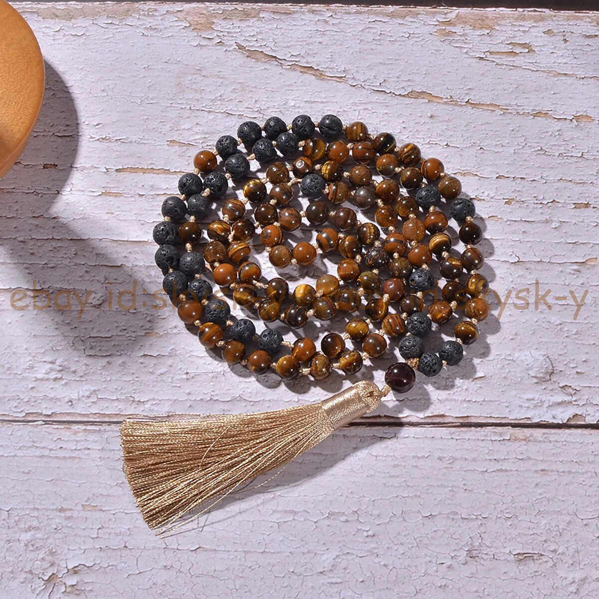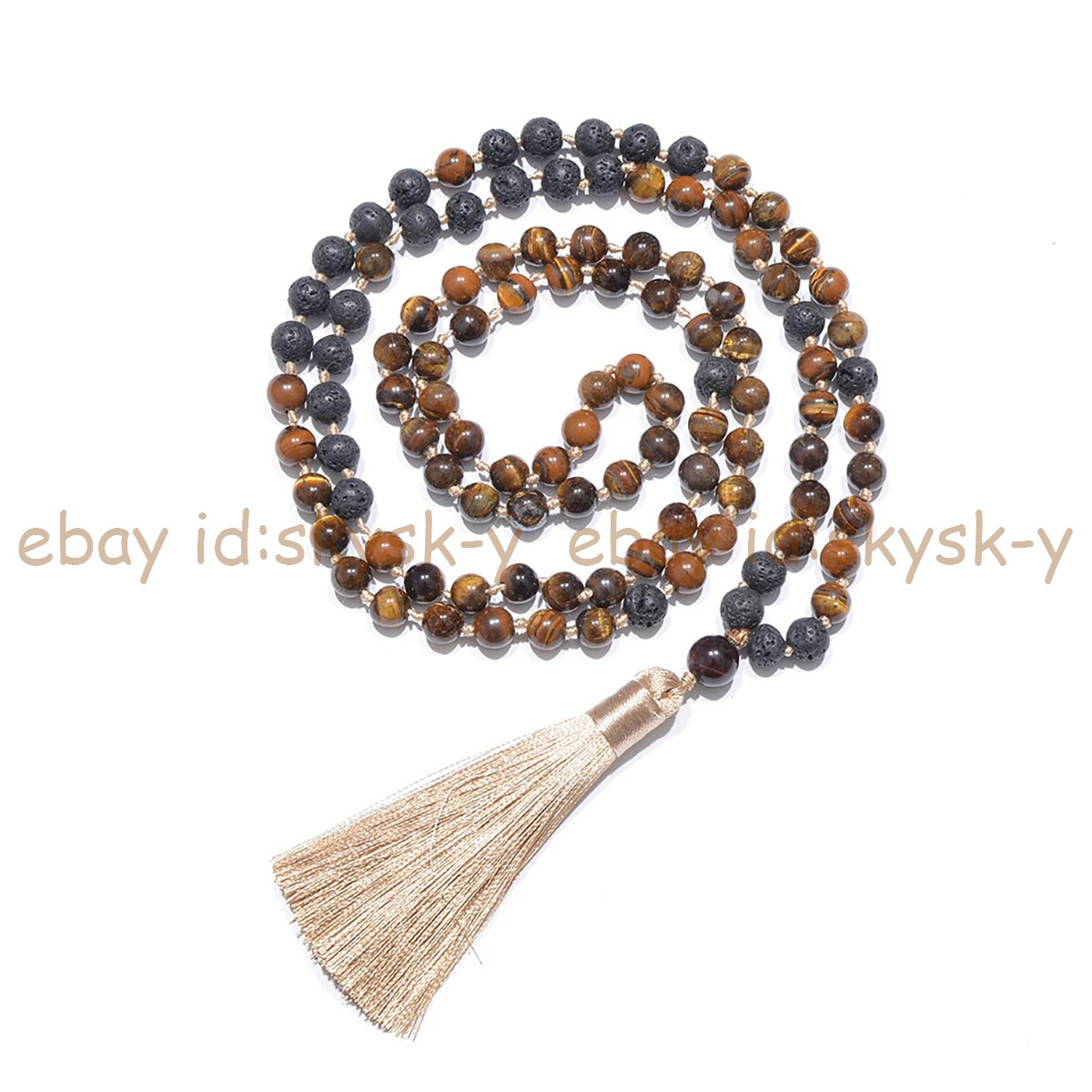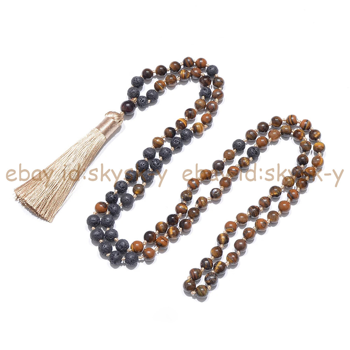Yellow Tiger's Eye Black Lava Rock 108 Prayer Beads Tibet Buddhist Mala Necklace