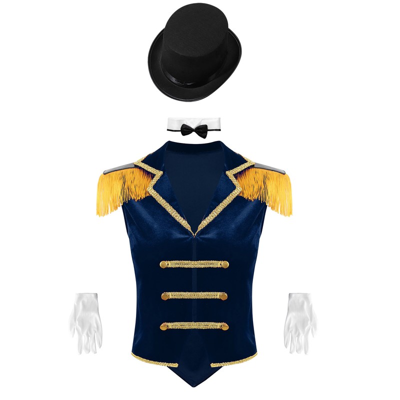 You can wear this circus ringmaster velvet vest match with suit pants, leather pants, skirt, gloves, whip or hat.