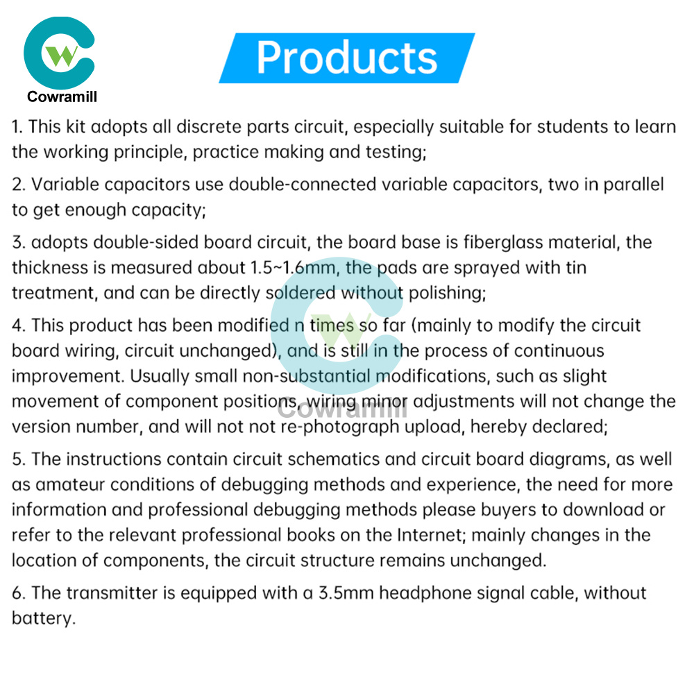 5. The instructions contain circuit schematics and circuit board diagrams, as well as amateur conditions of debugging methods and experience, the need for more information and professional debugging methods please buyers to download or refer to the relevant professional books on the Internet; mainly changes in the location of components, the circuit structure remains unchanged.