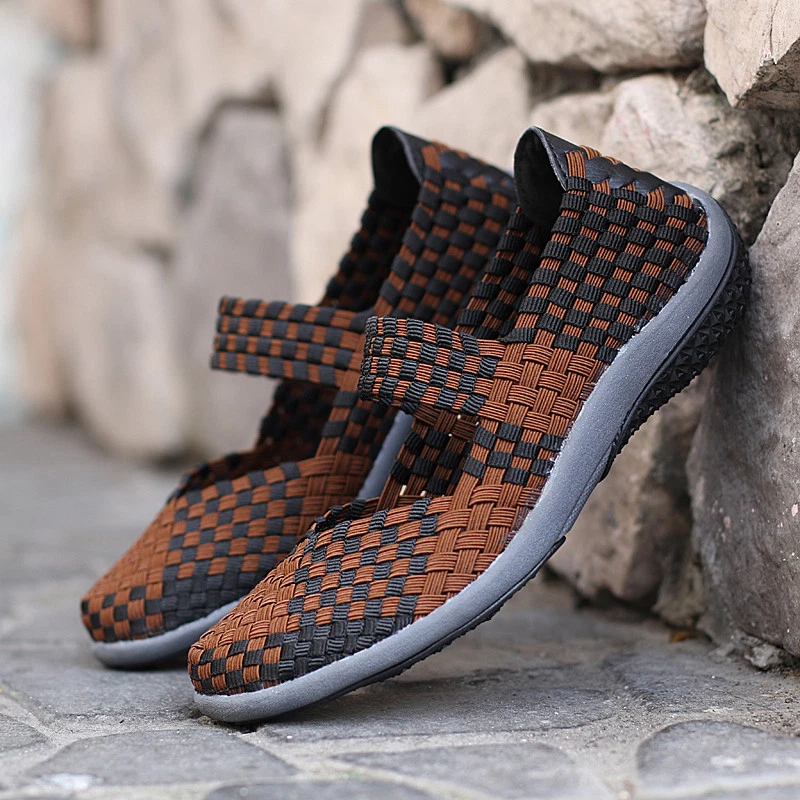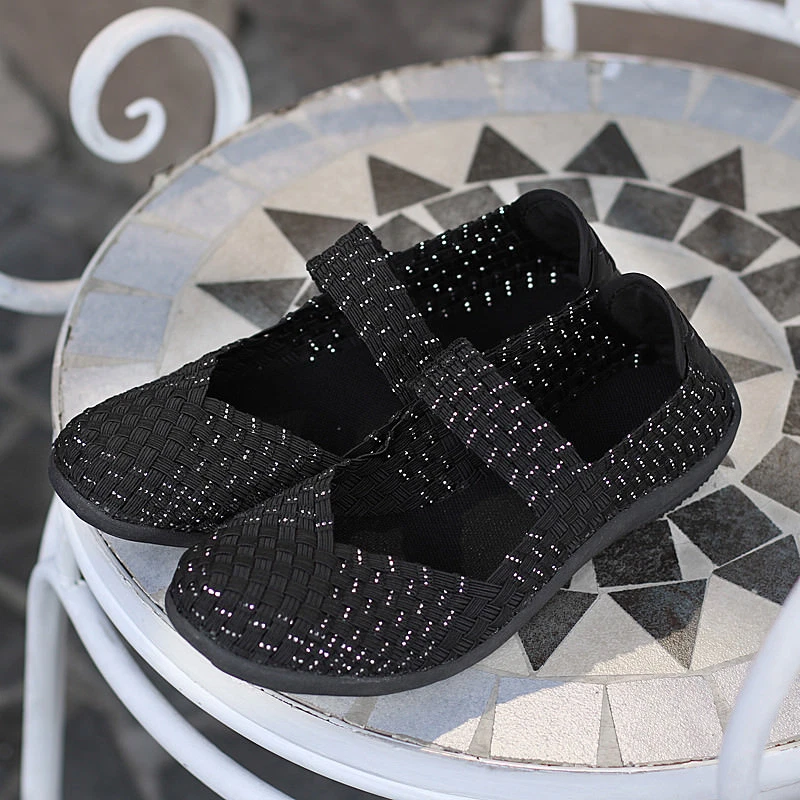 Women Slip On Walking Shoes Woven Elastic Mary Jane Flat Lightweight Fashion