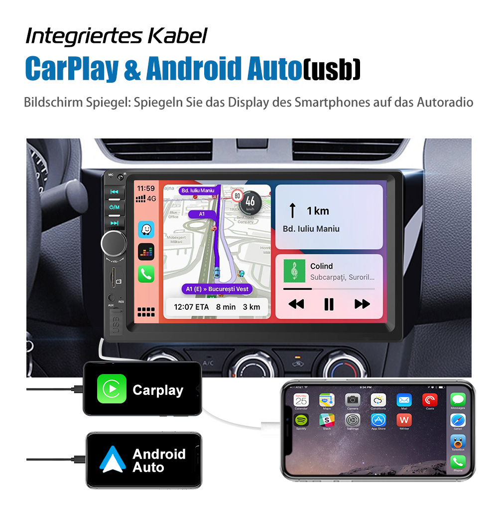 【Phone Mirror Link-Funktion】 Mirror Link über die ursprüngliche USB-Leitung des Telefons kann mit dem integrierten Bildschirm synchronisiert werden. Durch Mirror-Link zeigt das Autoradio den Inhalt von Ihrem Handy-Bildschirm synchron an. Schalten Sie die Navigations-App auf Ihrem Telefon ein, Sie können die Navigationsfunktion in Ihrem Auto während der Fahrt nutzen.