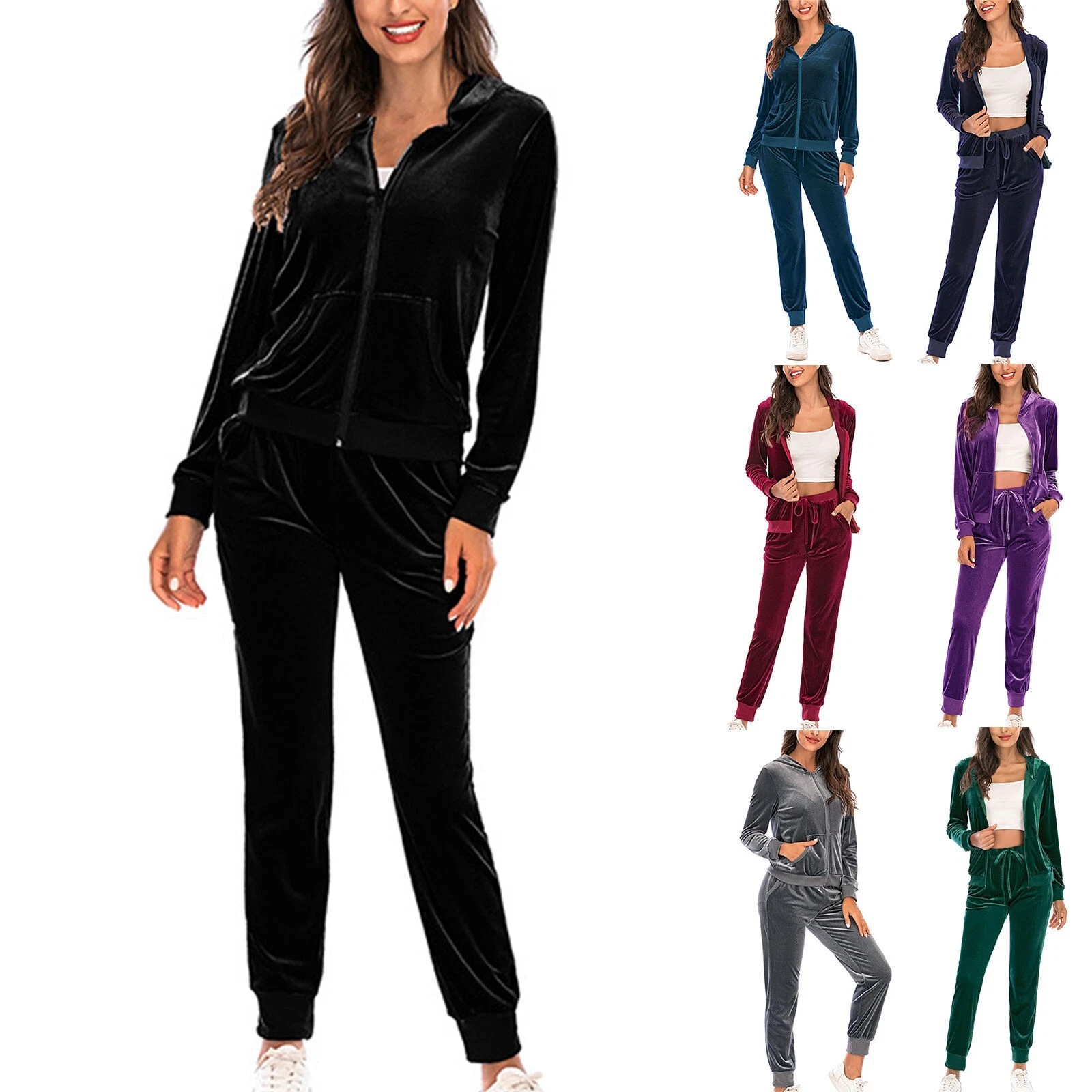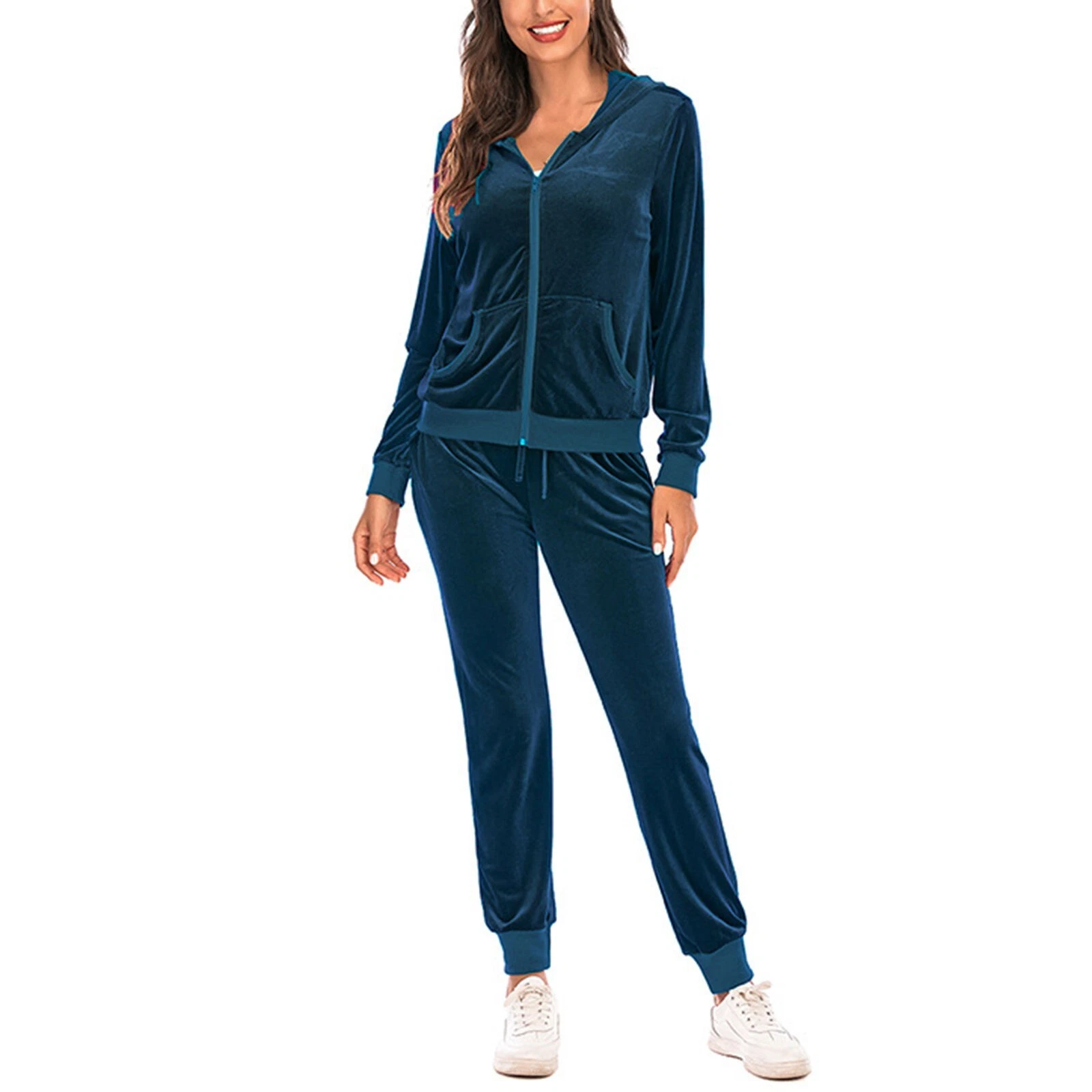 UNIQUE FEATURES: Two Piece Outfits For Women/Velour Tracksuit For Women/Hooded Jogging Suits For Women/Long Sweatpants Matching Sets/Long sleeve Set For Women/Warm Jogger Set With Drawstring/Casual Sweatsuit With Pockets/Solid Color Pants Set For Women/Comfy Loungewear For Women