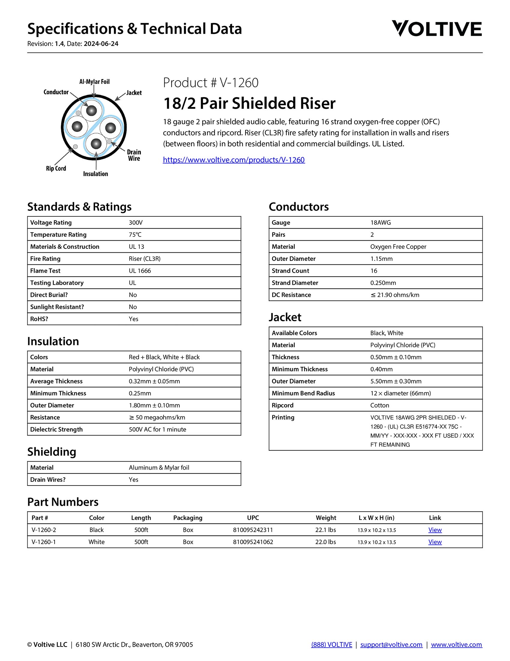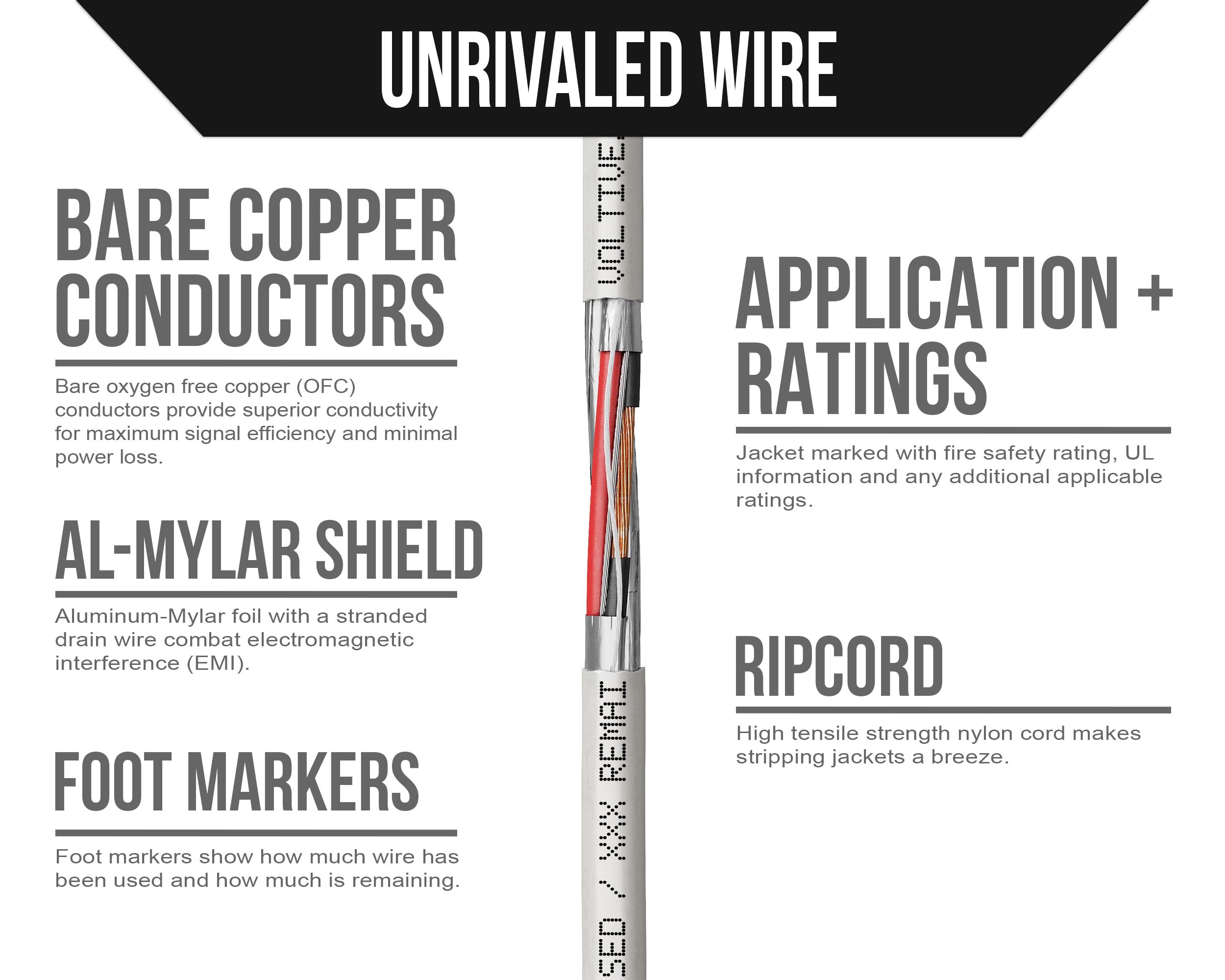 - Jacket printing includes safety rating, UL information and any additional applicable ratings.