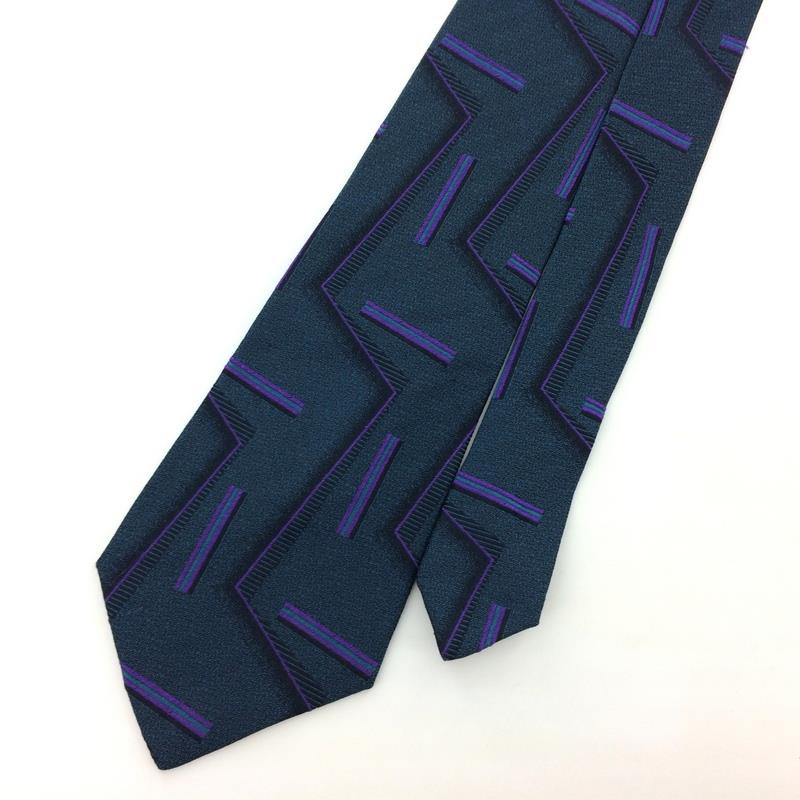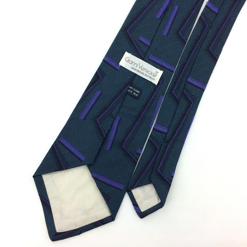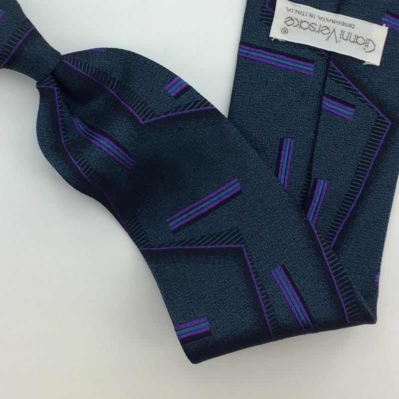 Gianni Versace Tie Italy Greenish-Gray/Purple Luxury Silk Zigzag L2 Vintage/Rare