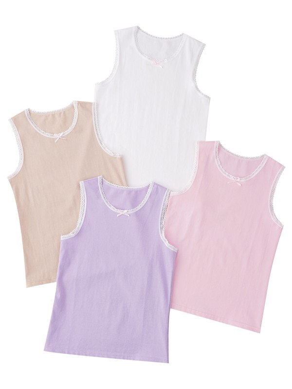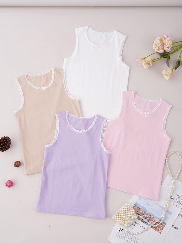 Girl’s tank top vest with a cute bow, available in lace trim or floral print. And 4 different colors or patterns in a pack to meet the different needs.