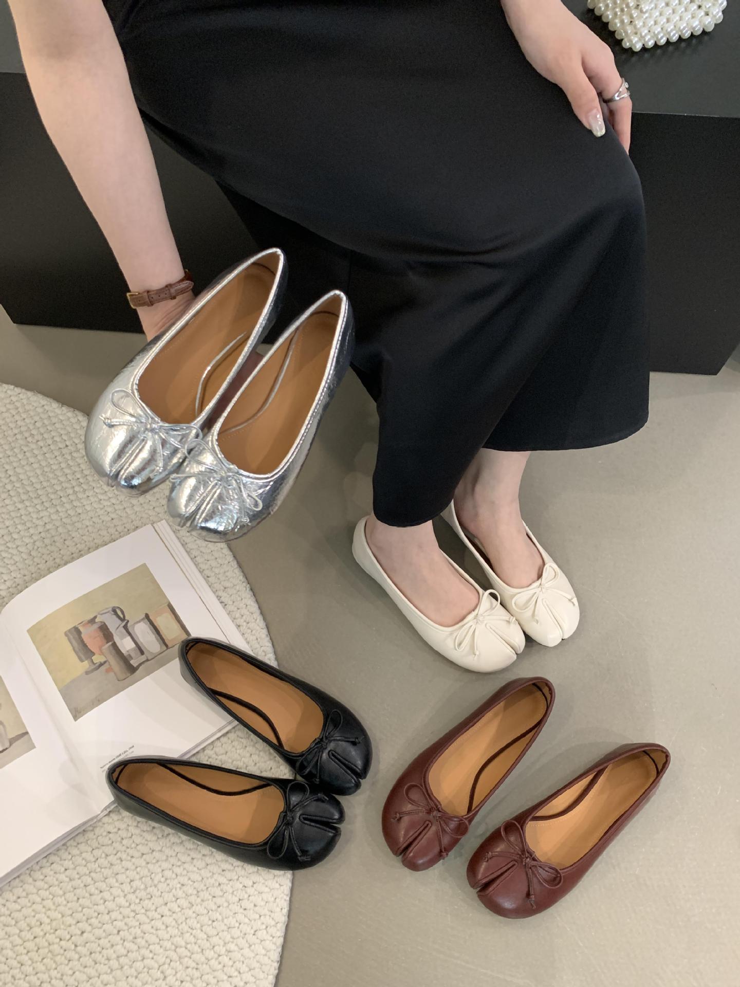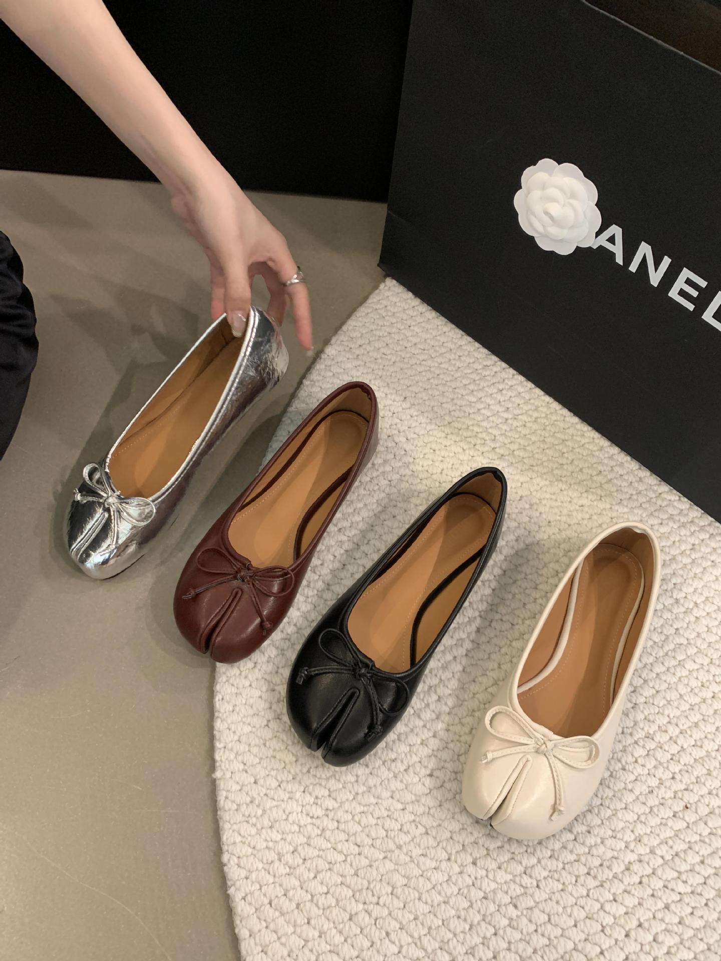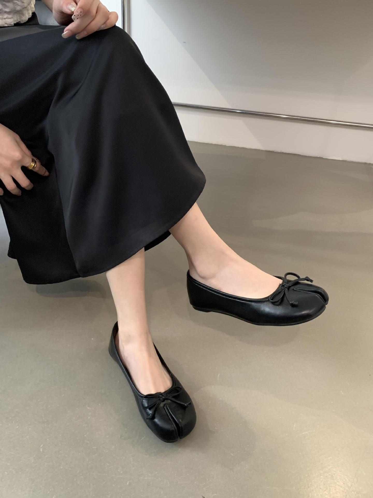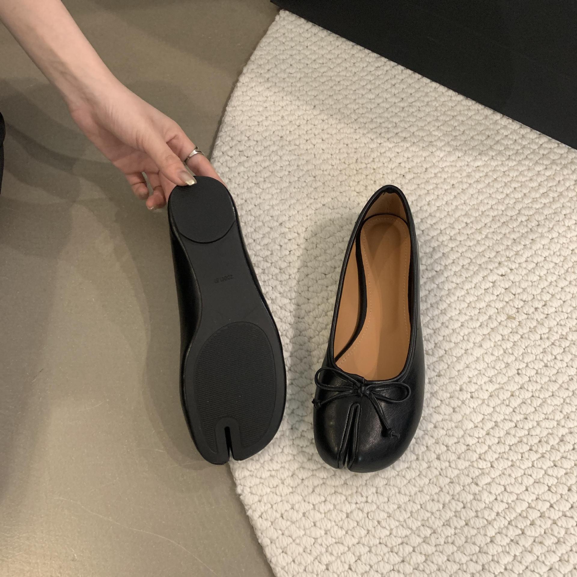 Women's PU Leather Bowtie Tabi Split Toe Mid Heel Ballet Fashion Court Shoes New