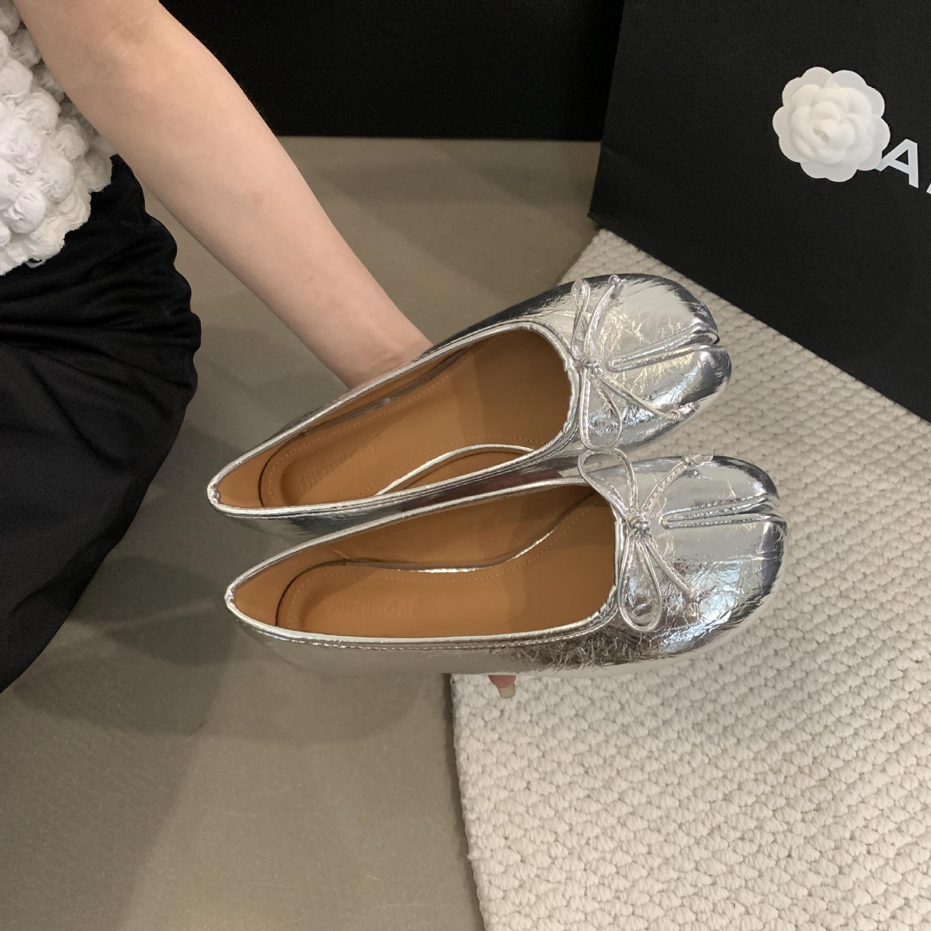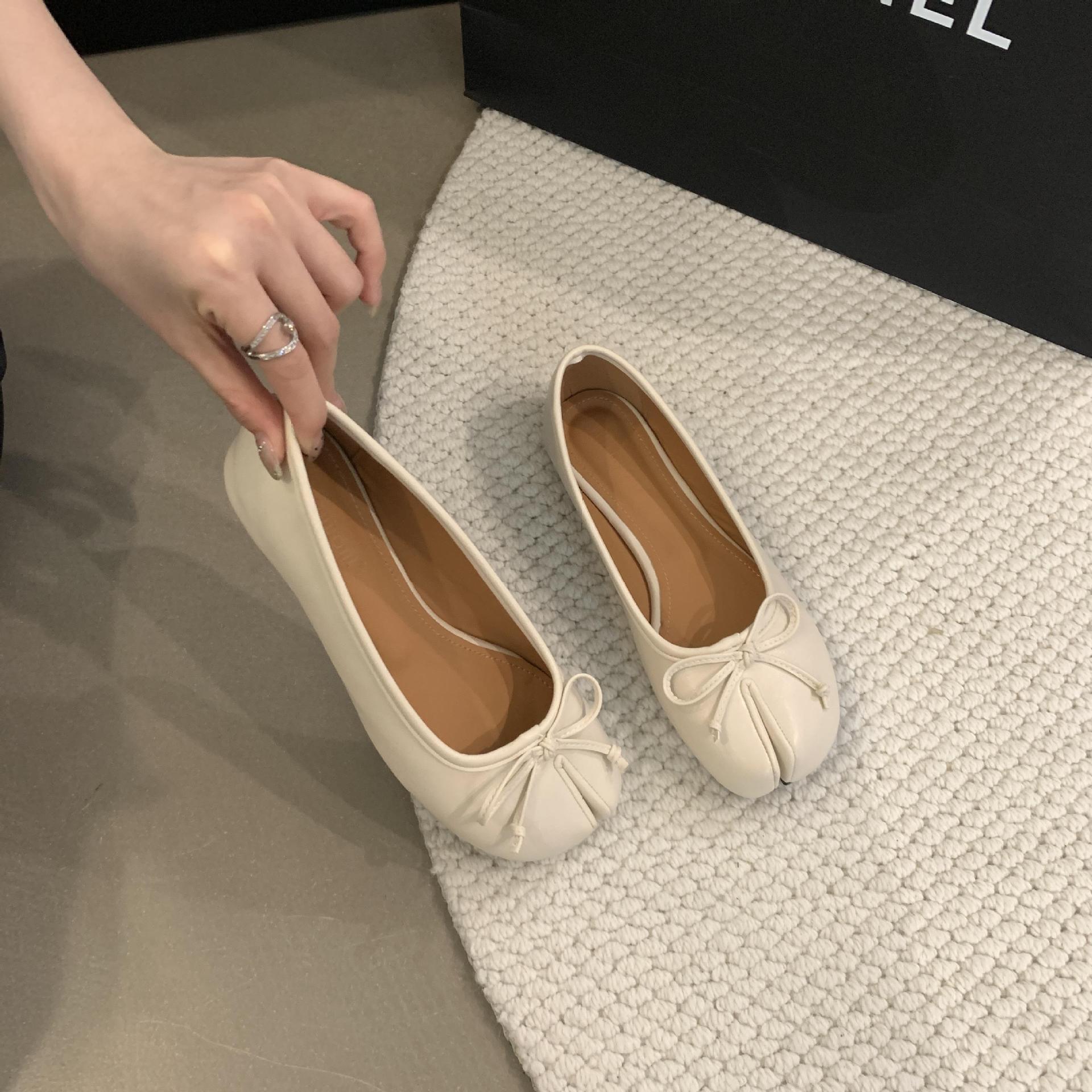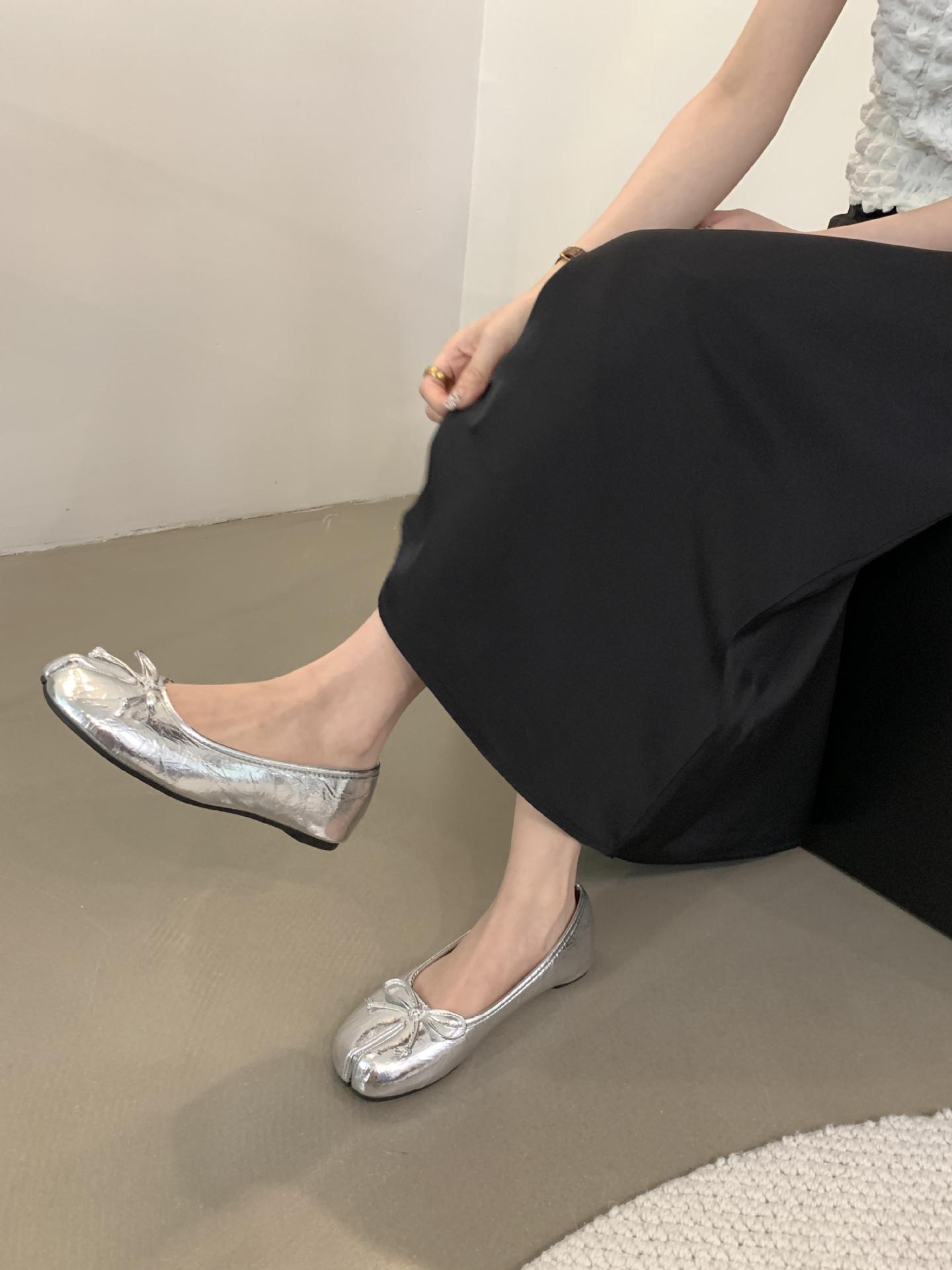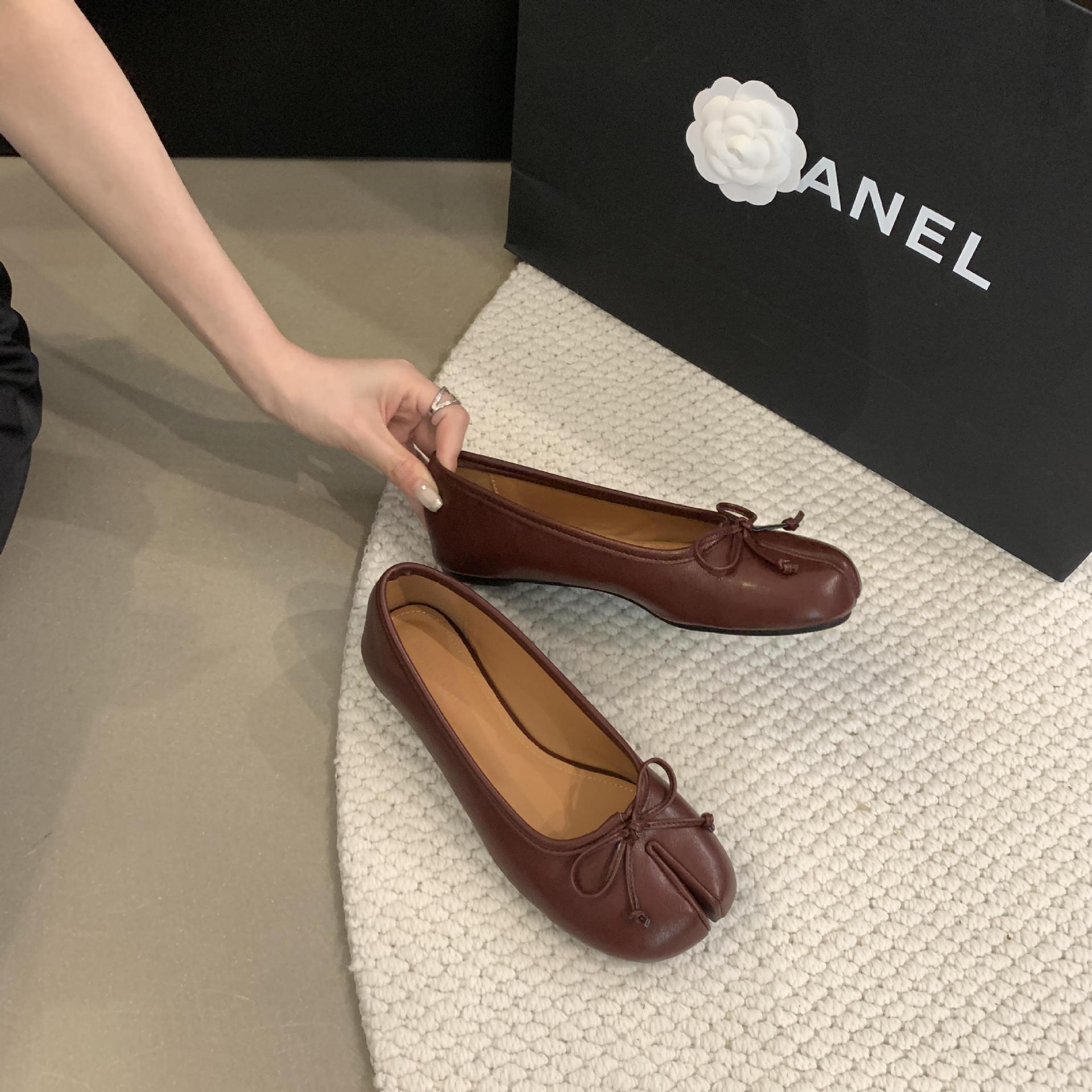Women's PU Leather Bowtie Tabi Split Toe Mid Heel Ballet Fashion Court Shoes New