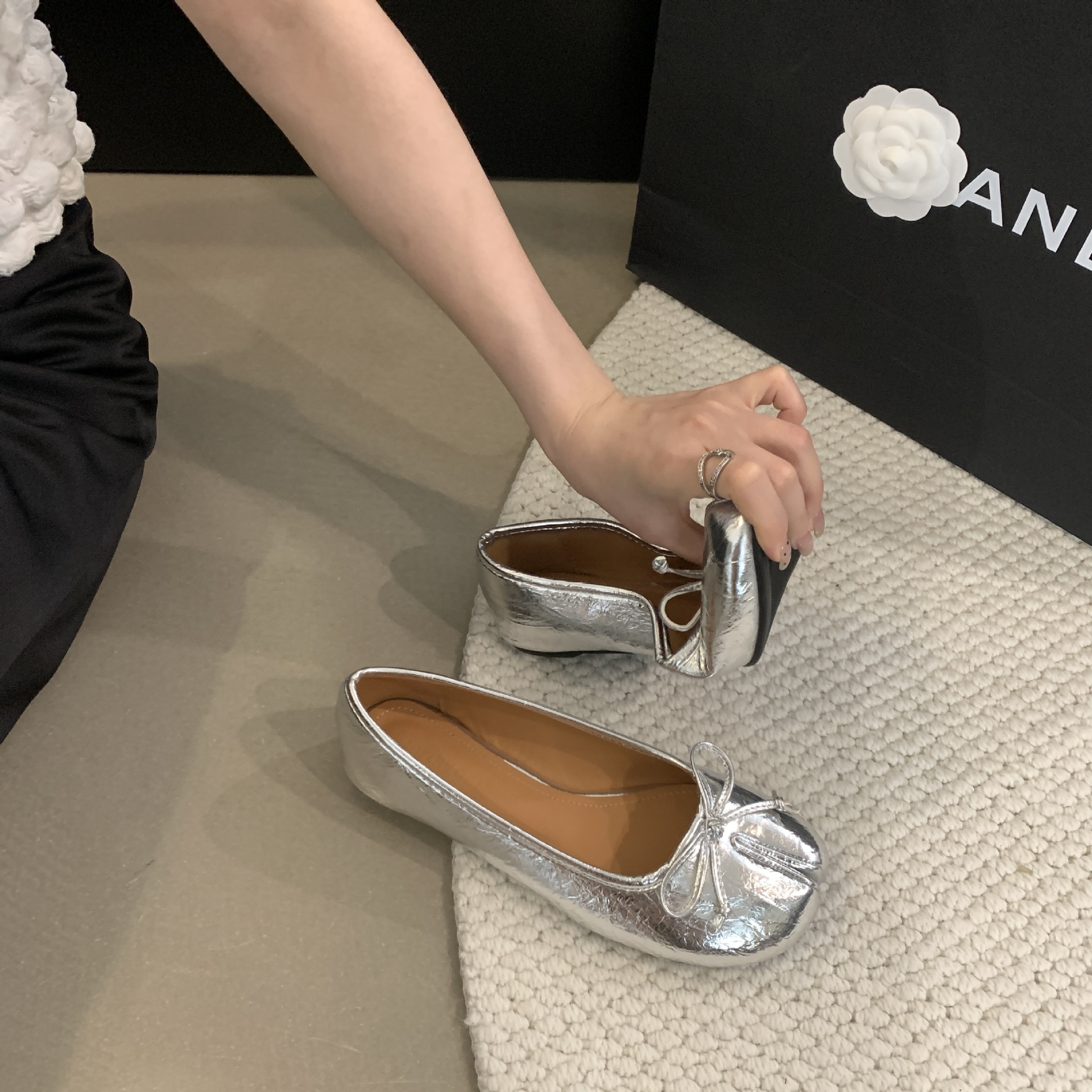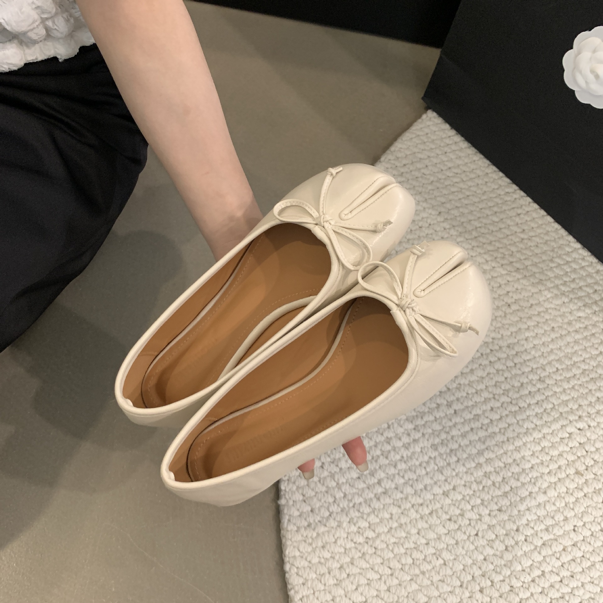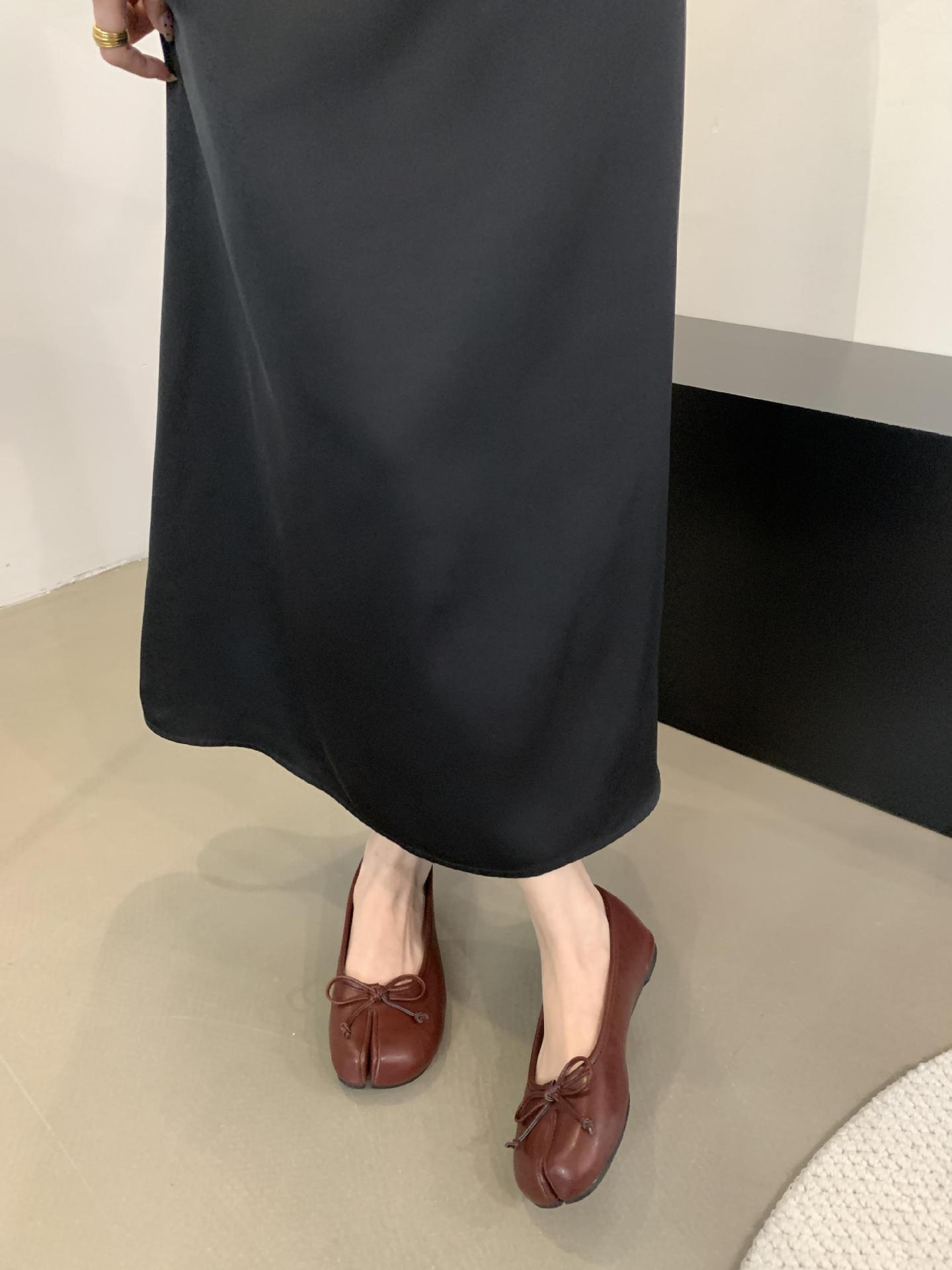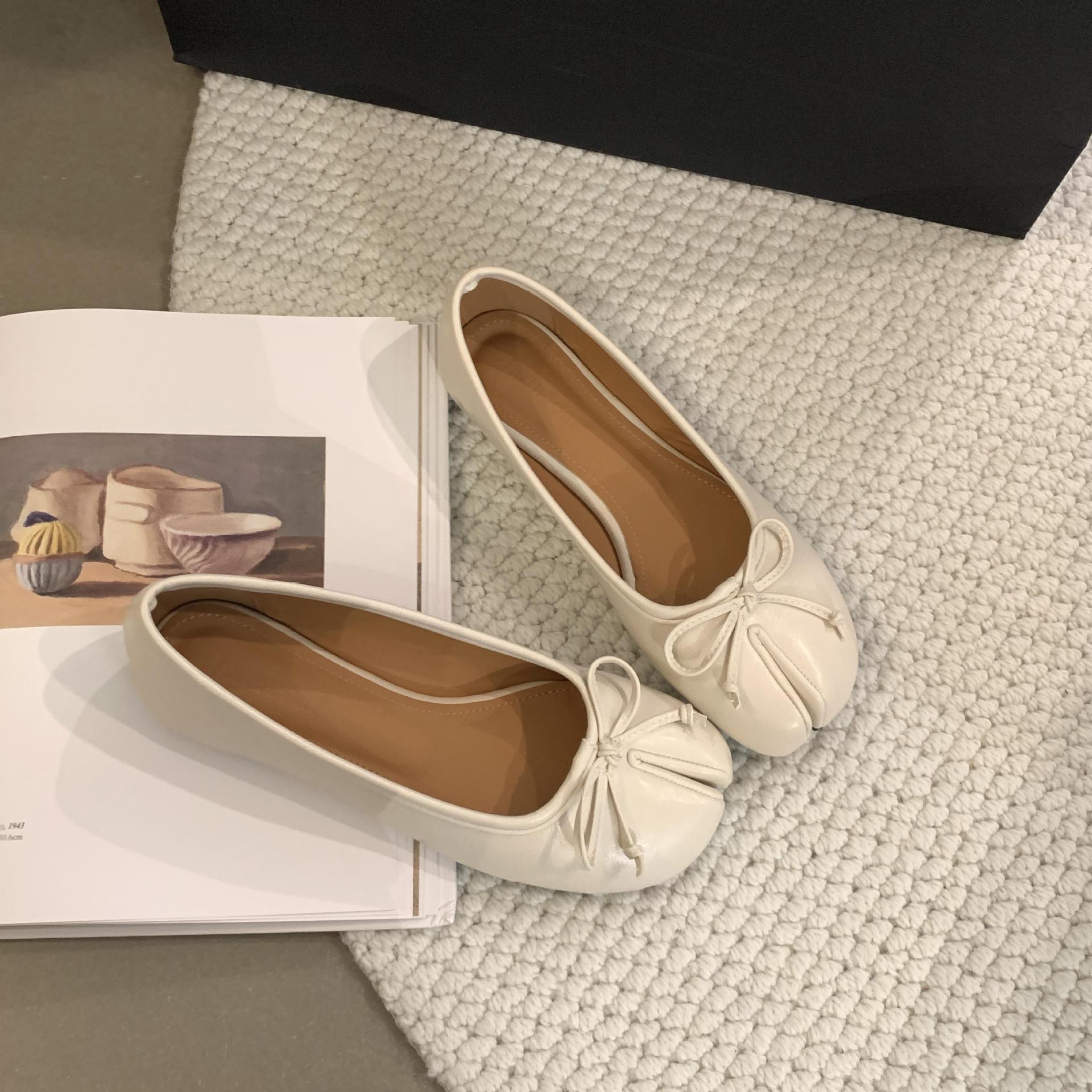 Women's PU Leather Bowtie Tabi Split Toe Mid Heel Ballet Fashion Court Shoes New