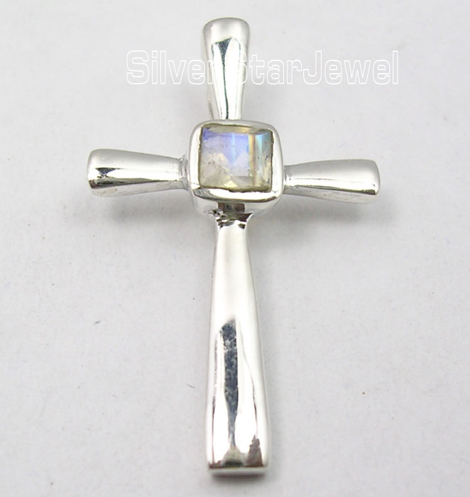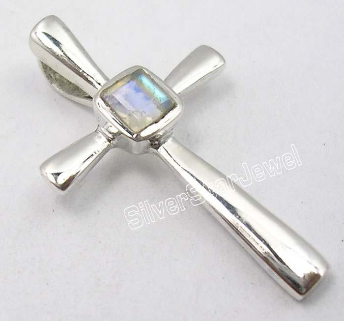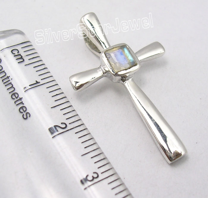 DEAL TODAY | 925 Solid Silver RAINBOW MOONSTONE CROSS Pendant 3 CM 2.6 Grams