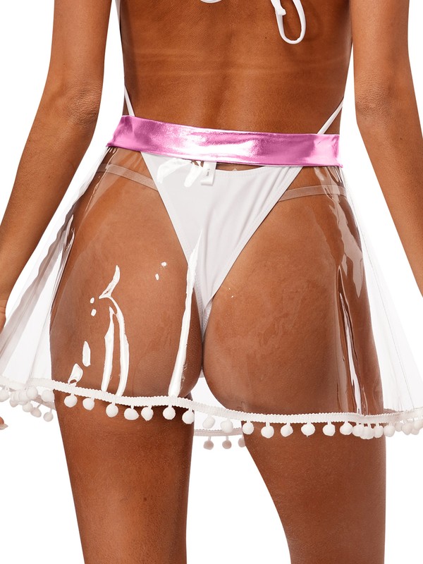 DE iEFiEL Sexy Damen PVC Rock Transparent Minirock Bikini Coverup Party Clubwear