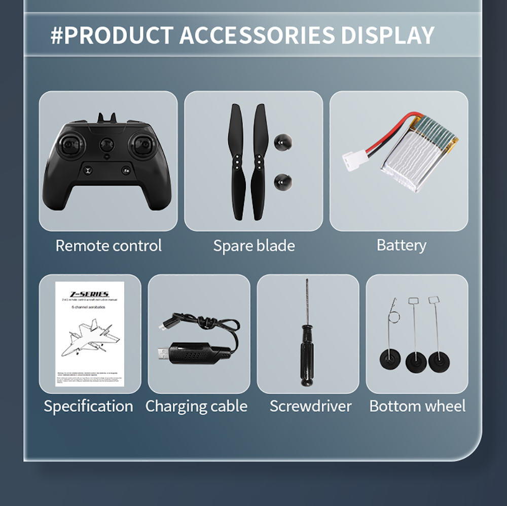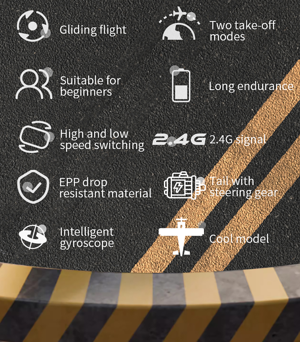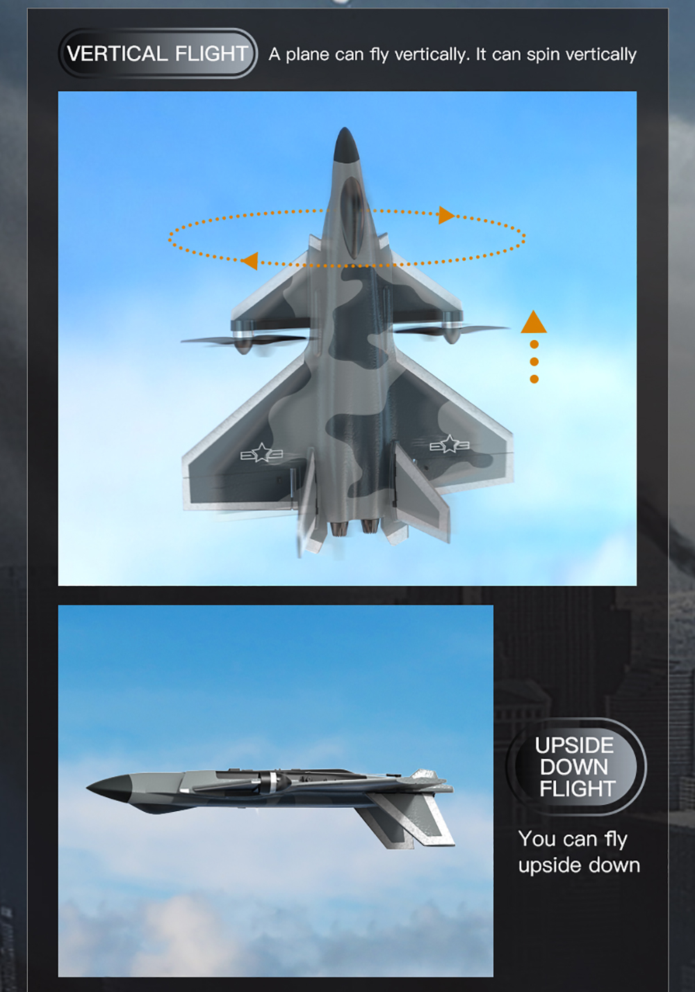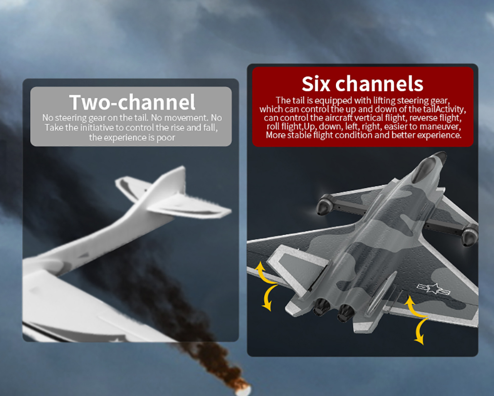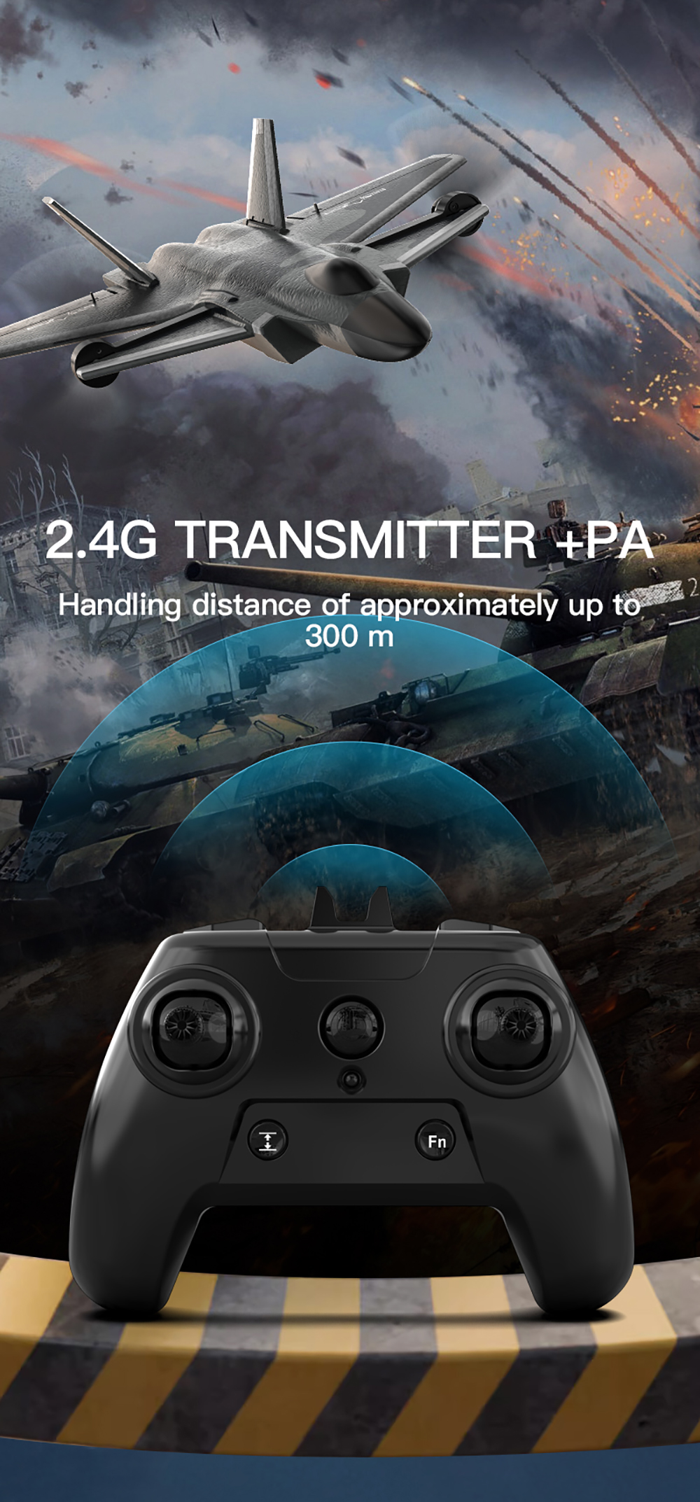 KF700 J-20 Glider functional, Vertical flight, reverse flight, roll flight, ascent, descent, leftturn, right turn,Efficient pneumatic profile design with twobrushless motors,2.4G receiverPlus PA, six channel structure.double protection battery, built-in gyroscope, replaceableCell structure.