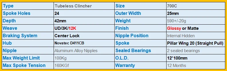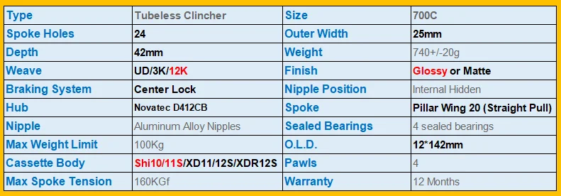 700C 42*25mm Center Lock Brake Tubeless Clincher Carbon Wheelset