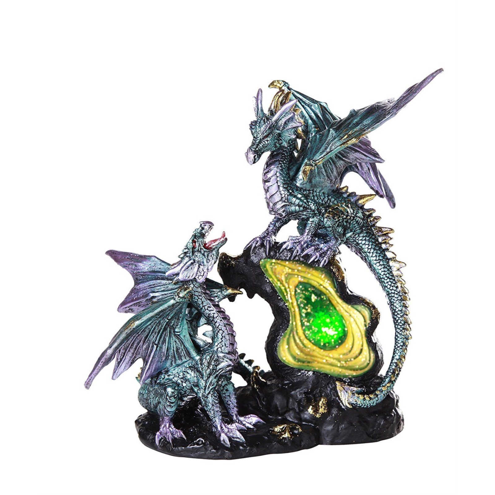 Blue Dragon Family Standing on Gemstones LED Light Up Figurine Fantasy Décor New