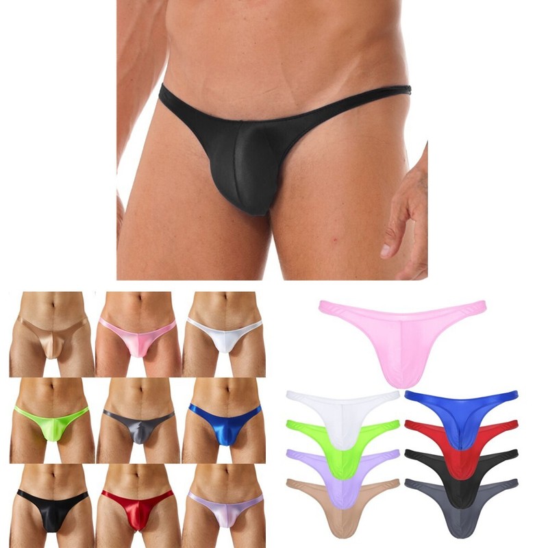 Mens Glossy Bulge Pouch Thongs Underwear Solid Color Low Waist Briefs Swimwear.