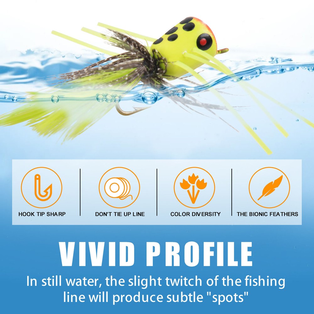 This dry fly fish popper mimics the appearance of real fly, which is vivid and realistic. The lively leg lines make ripples on the water can easily draw fish's attention.